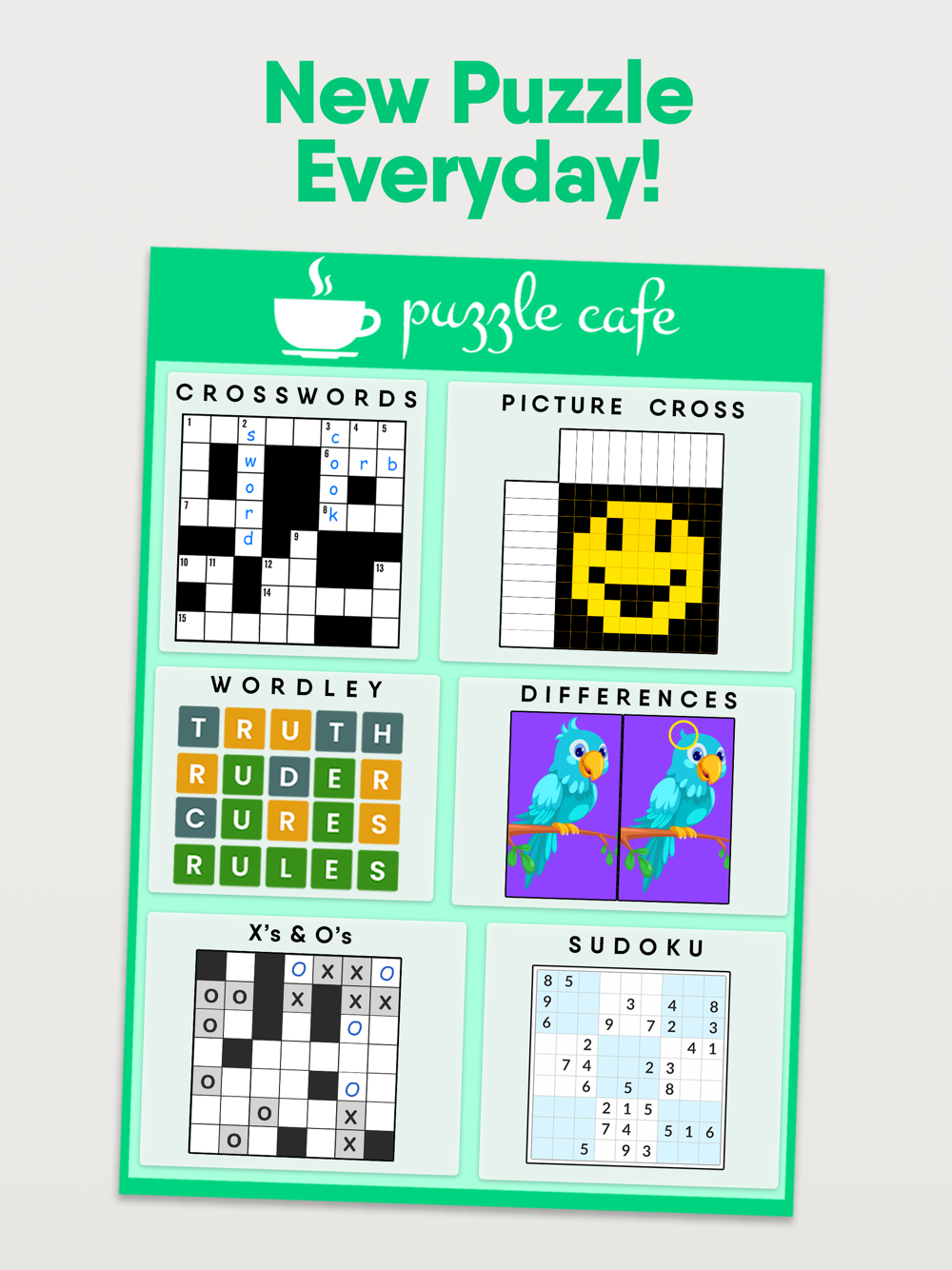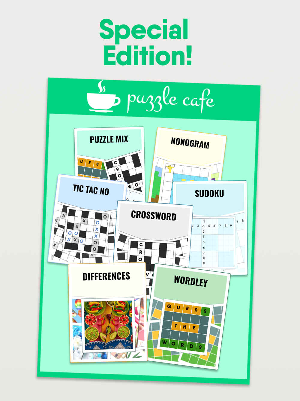 Play the most well built daily puzzle game in the store - Puzzle Cafe!