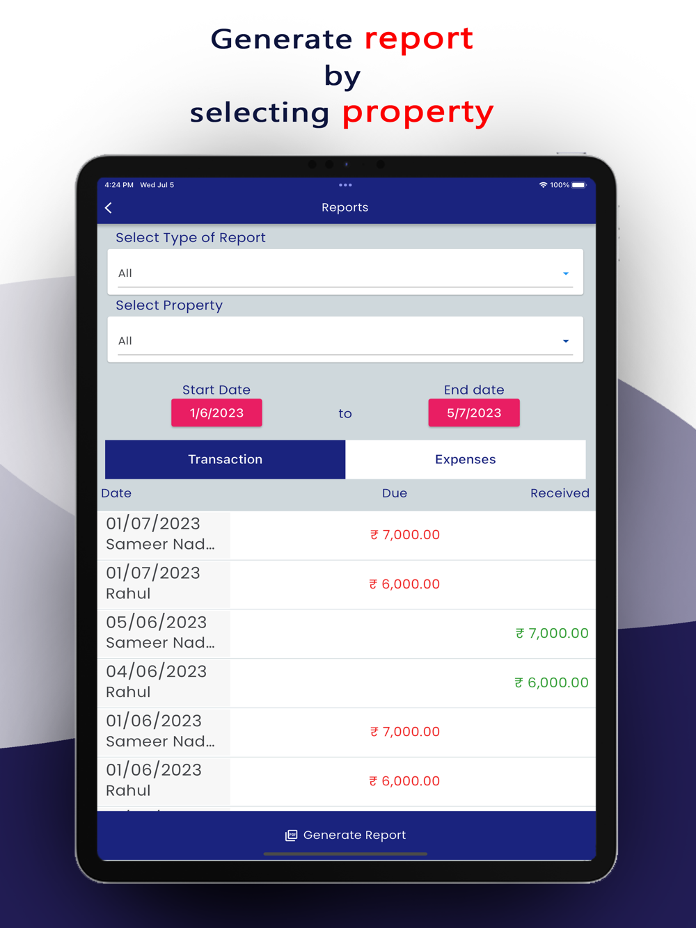 The tenant can view their due details and can see reports of due and paid details. Reports can be generated and saved as a PDF. It auto-reminds tenants of dues.