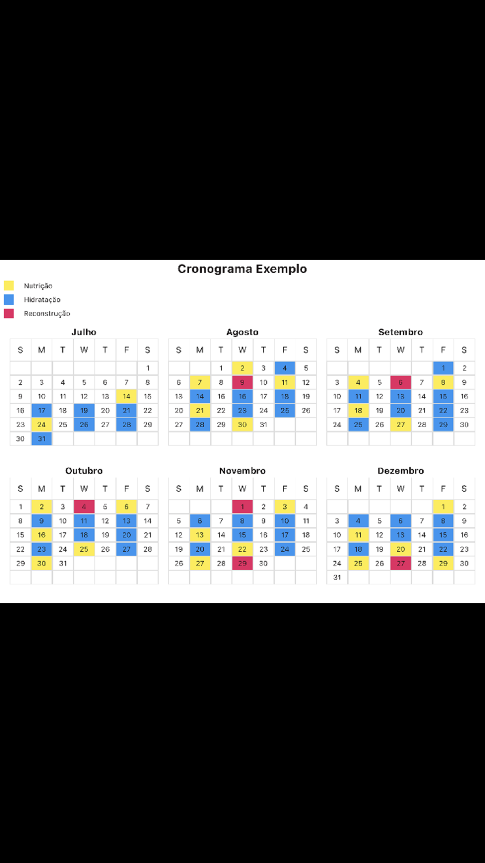 Pronto, agora você possui um cronograma capilar para salvar ou compartilhar.