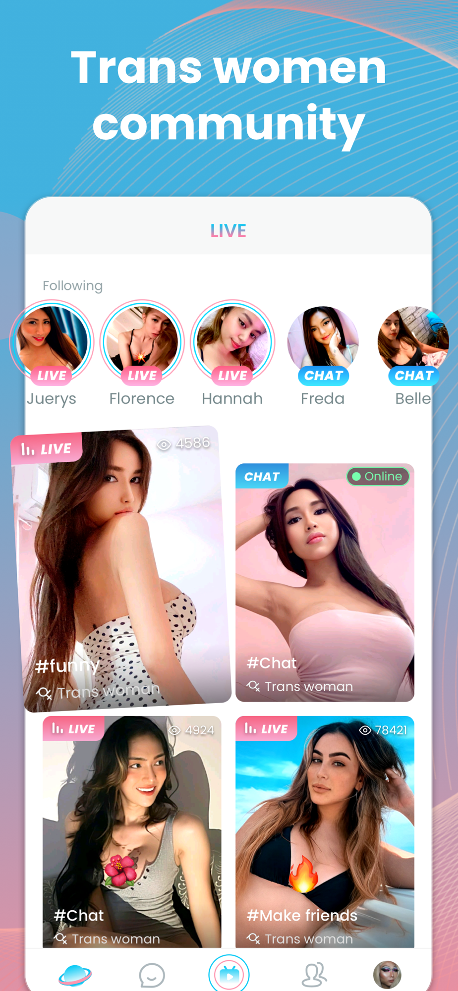 TSChat is a social community for transgender women looking for chat, friendship, care & support. We also provide you with a private and safe place where you don’t worry about judgment or discrimination.