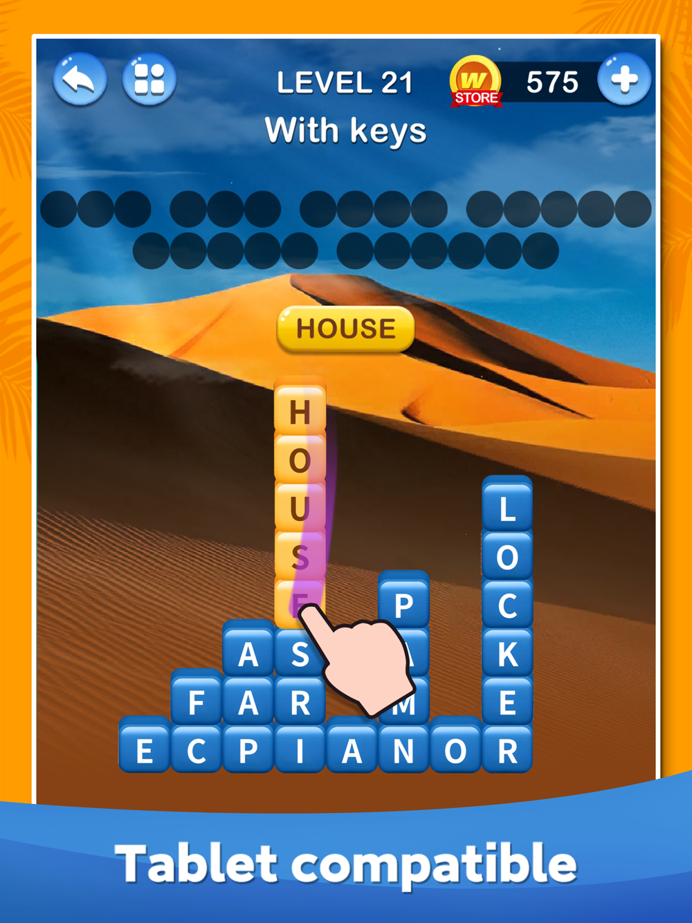 Swipe and spelling the letters and build words to collect coins and get the tiles! Find the clues to solve the crossword puzzles! DOWNLOAD Word Puzzle NOW to begin brain training and improve your spell skill!