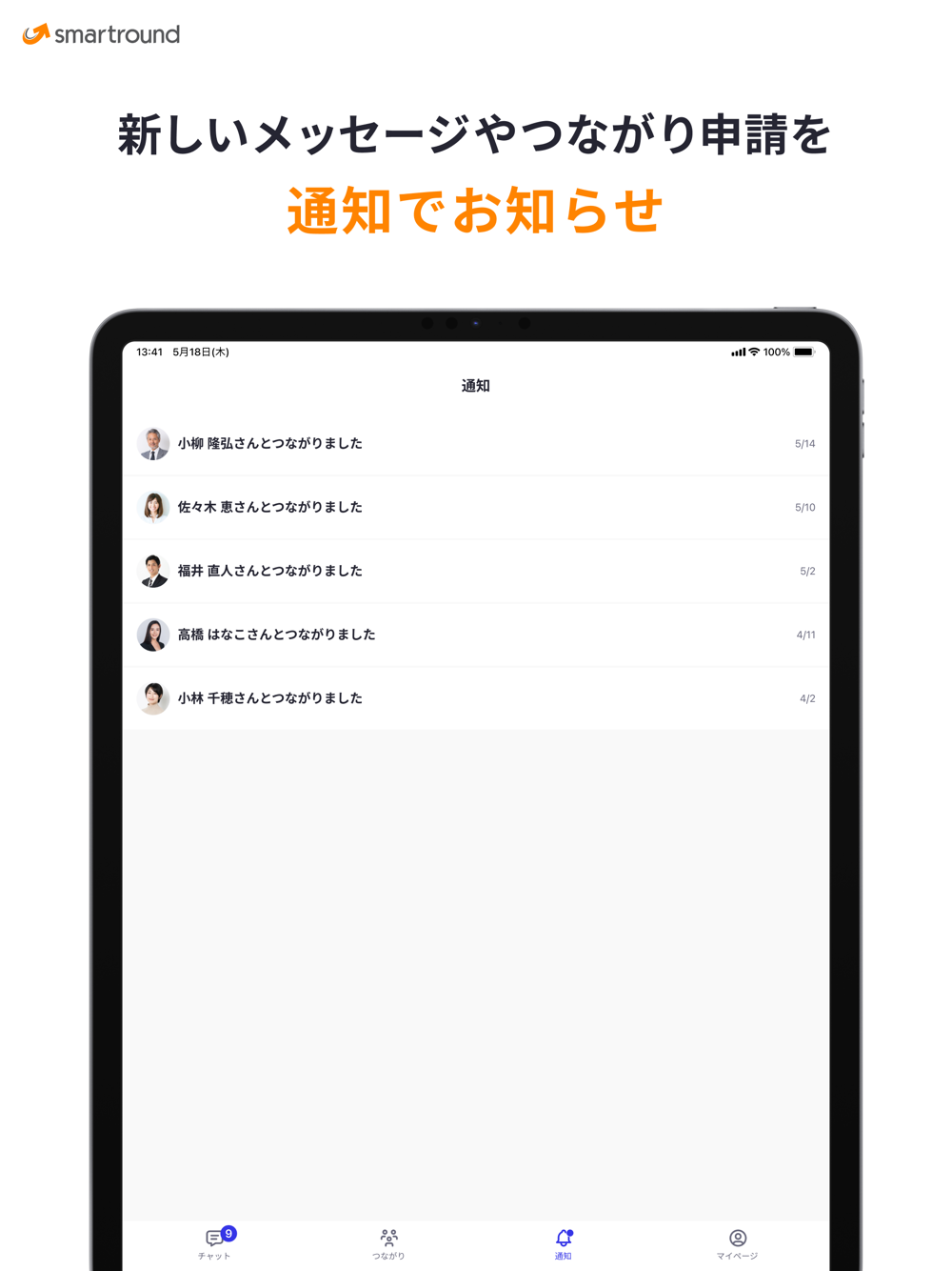 新しいメッセージやつながり申請を受け取った際に通知でお知らせします