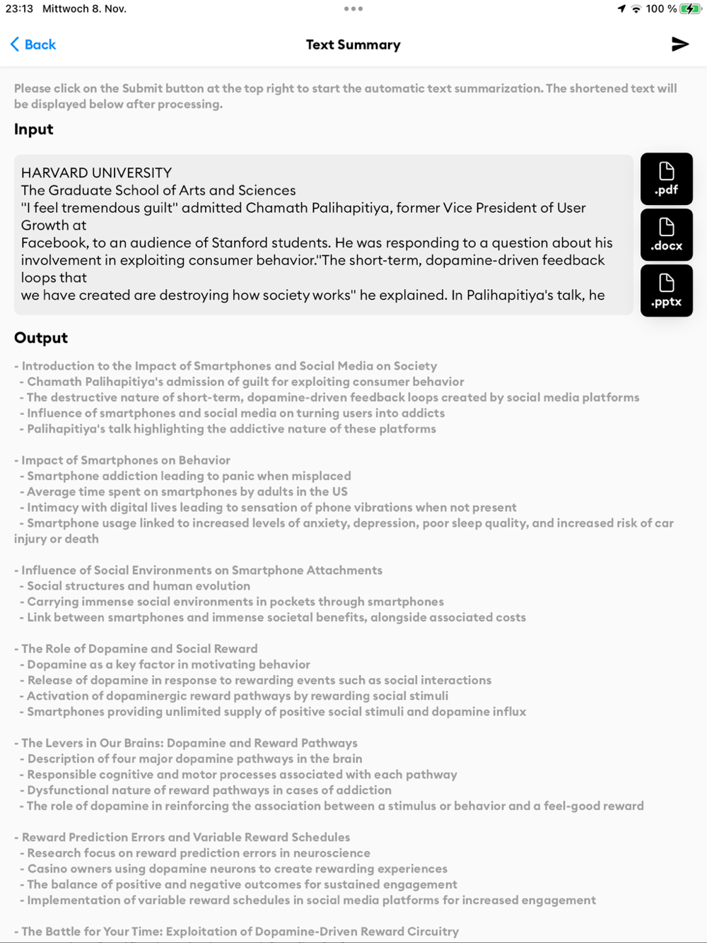 Letter Assistance: Especially handy if you are living in a country where you're not fluent in the local language. Scan letters, and Minimalistic AI will recognize the text, provide a summary, translate it into your language, and even suggest the next steps or a reply if needed.