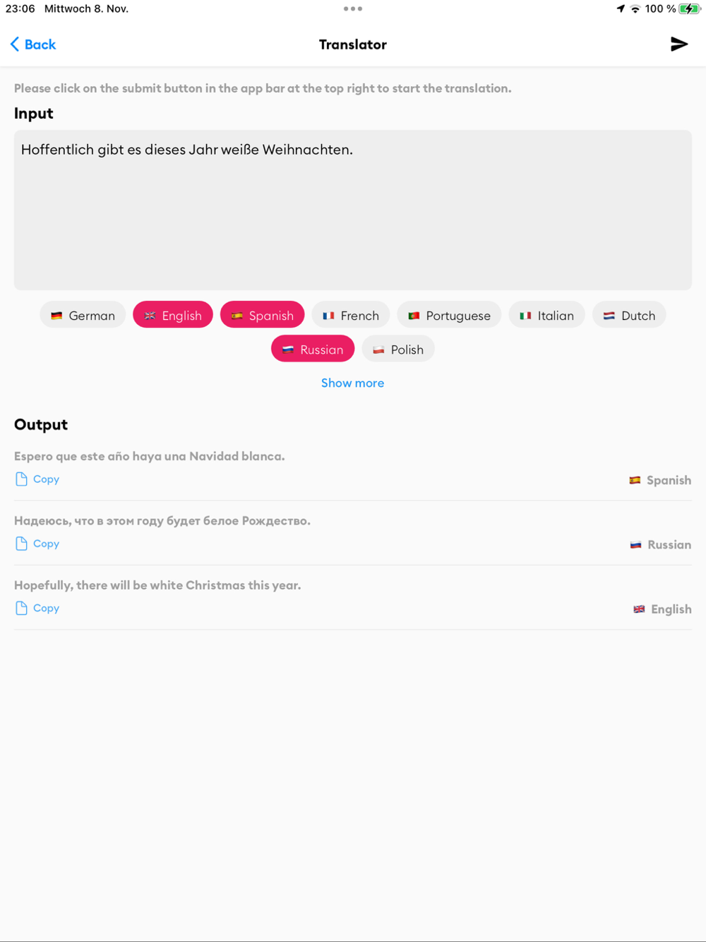 Multi-language Translations: Need to communicate in different languages? Get accurate translations into multiple languages simultaneously with just a tap. Ideal for travelers, businesses, and multi-lingual families.