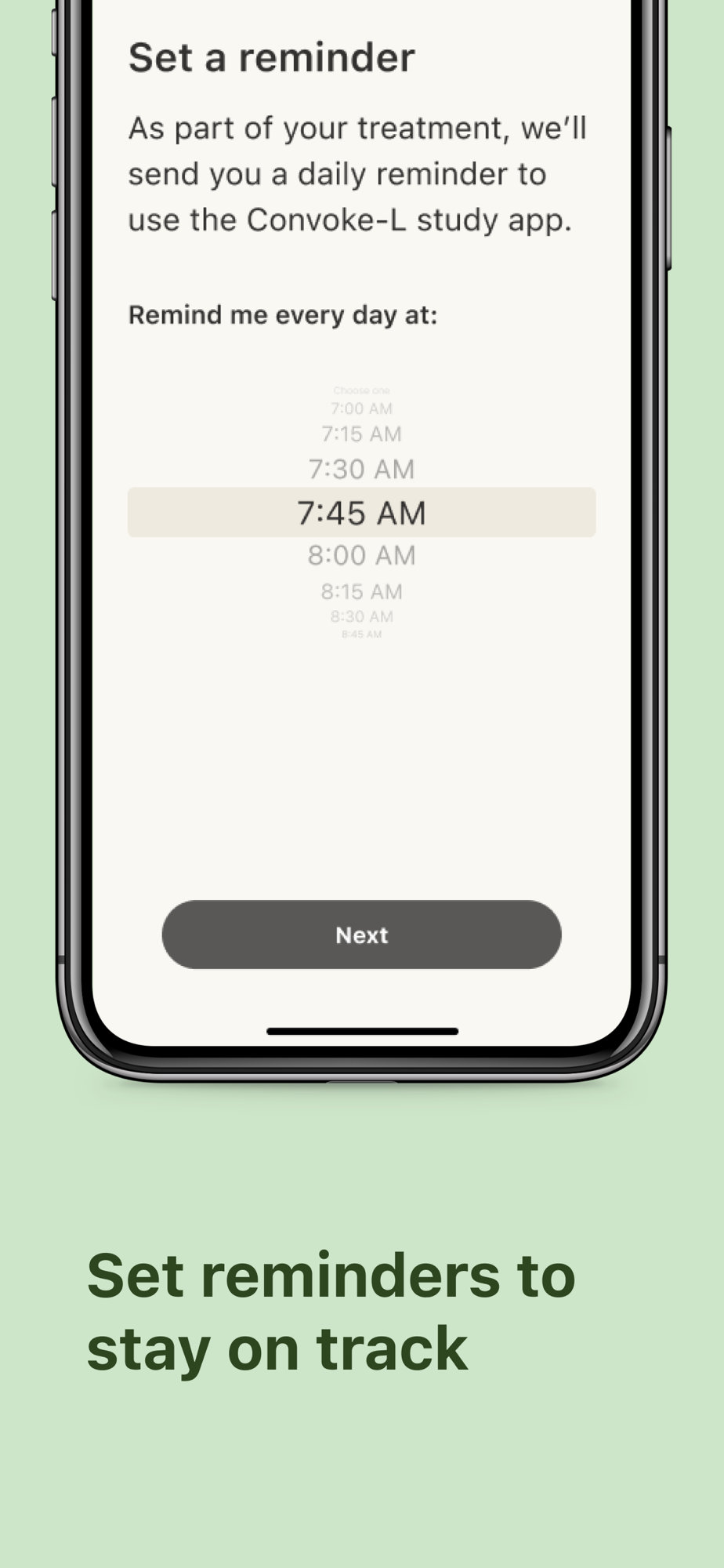 The CONVOKE-L Study App is only available to study subjects in the CONVOKE-L study to test the effectiveness of an investigational digital therapeutic. Please contact your study site for additional information.