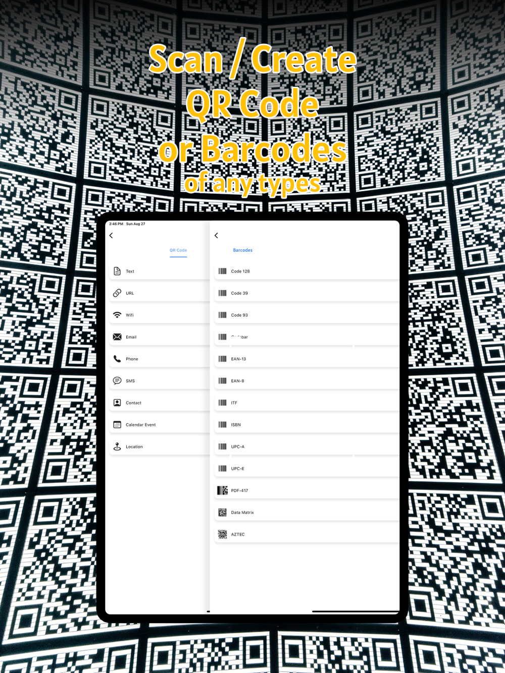 Not just that, you can create your our QR code or Barcodes and share it with your friends or clients, very easy and fast.