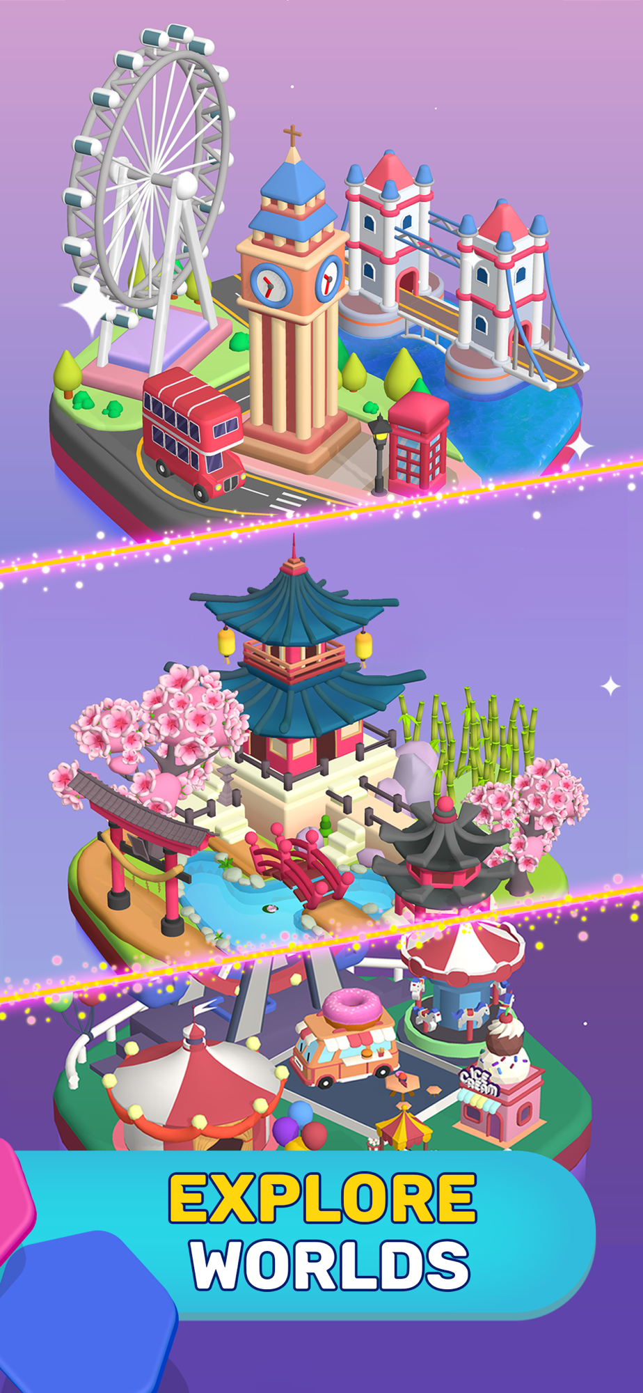 The fun and easy to play mechanics get you hooked. Enjoy sorting the tiles and watch them merge with satisfying ASMR sound and visual effects.