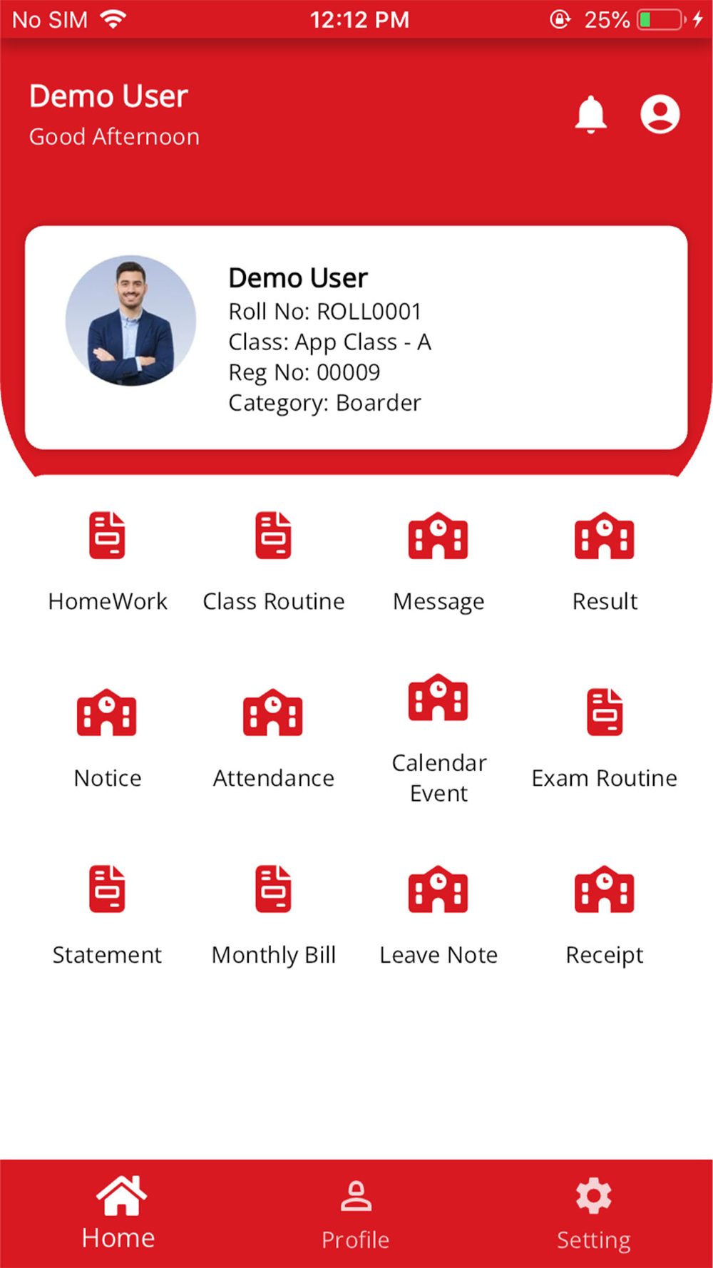 Parents can now view information maintained by the school about their children through the app. This information includes: class/exam routines, school calendar, homework, attendance records, progress reports, bills, receipts, etc. They can also send message to the school as well as receive regular communication from the school.