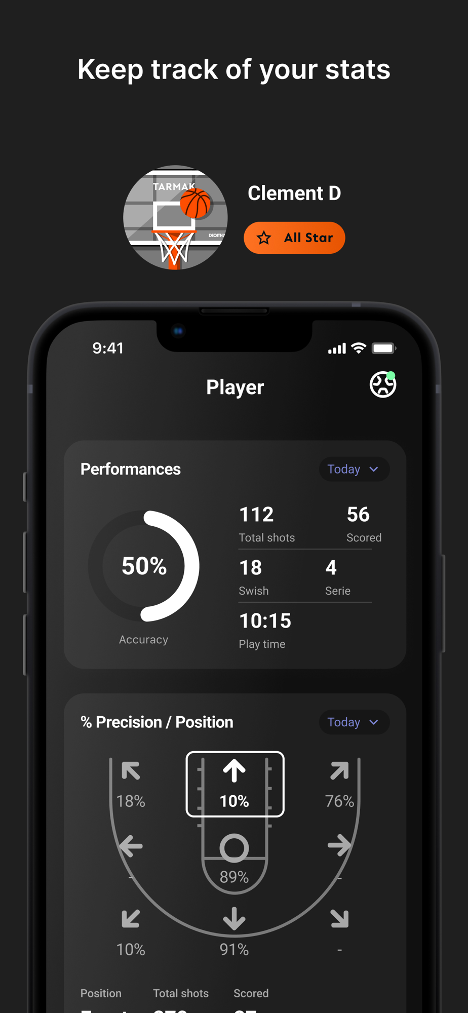 Designed for effortless setup and weather durability in mind, our connected basketball sensor seamlessly fits all hoop sizes and automatically detects all your scored, swishes and missed shots, while your smartphone is transformed into a live, interactive game interface thanks to the basketball play app!