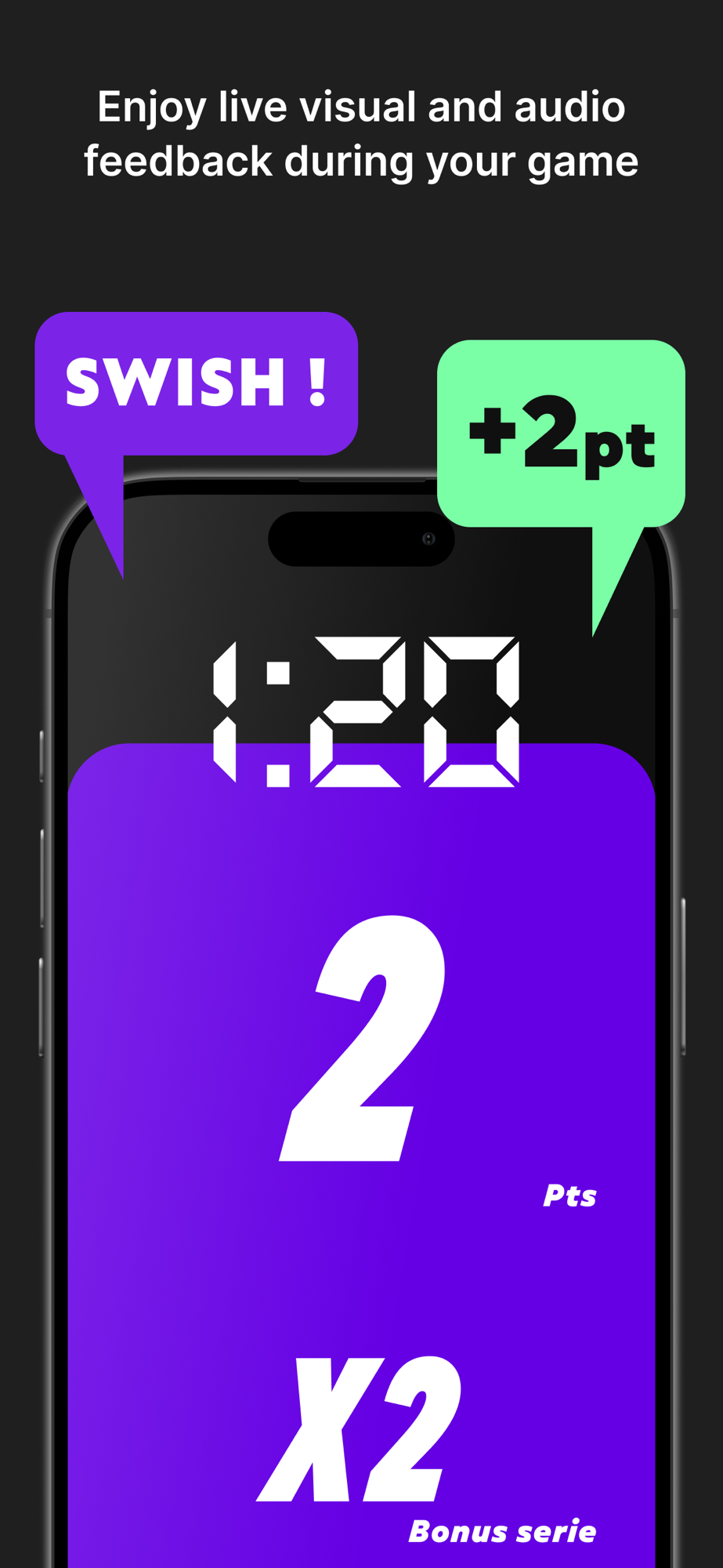 Turn your smartphone into a live scoreboard thanks to the app. The screen will indicate your score, your time left to score or each player’s turn to play during the game.