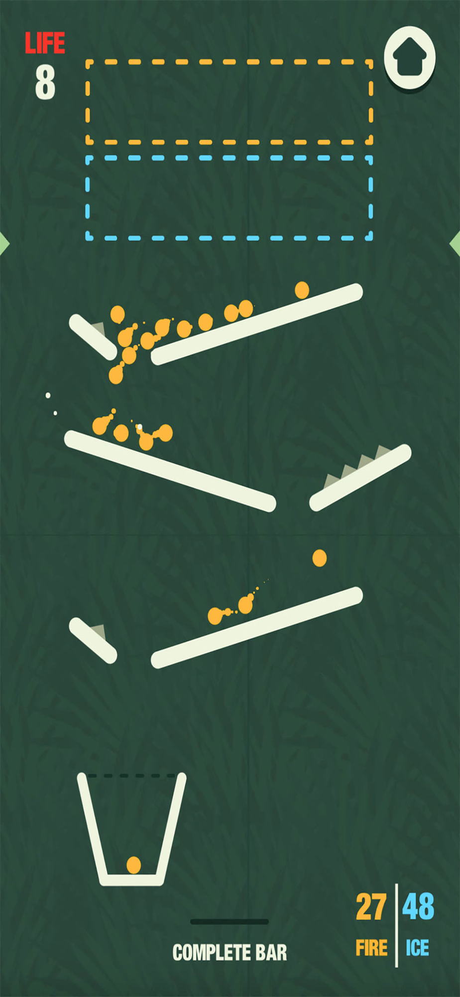 Pour colorful balls into a glass while skillfully navigating around thorns and obliterating stacks of fiery and icy blocks to progress towards the ultimate objective.