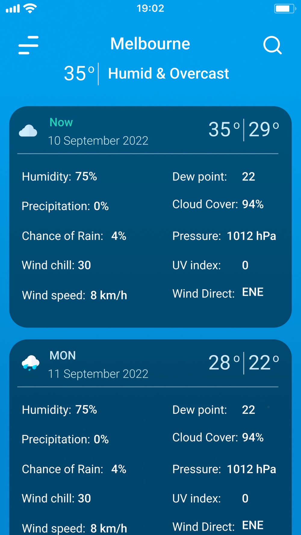 With 7 day forecast, weather forecast app provides accurate and detailed hourly weather data for the current day and the next 7 days