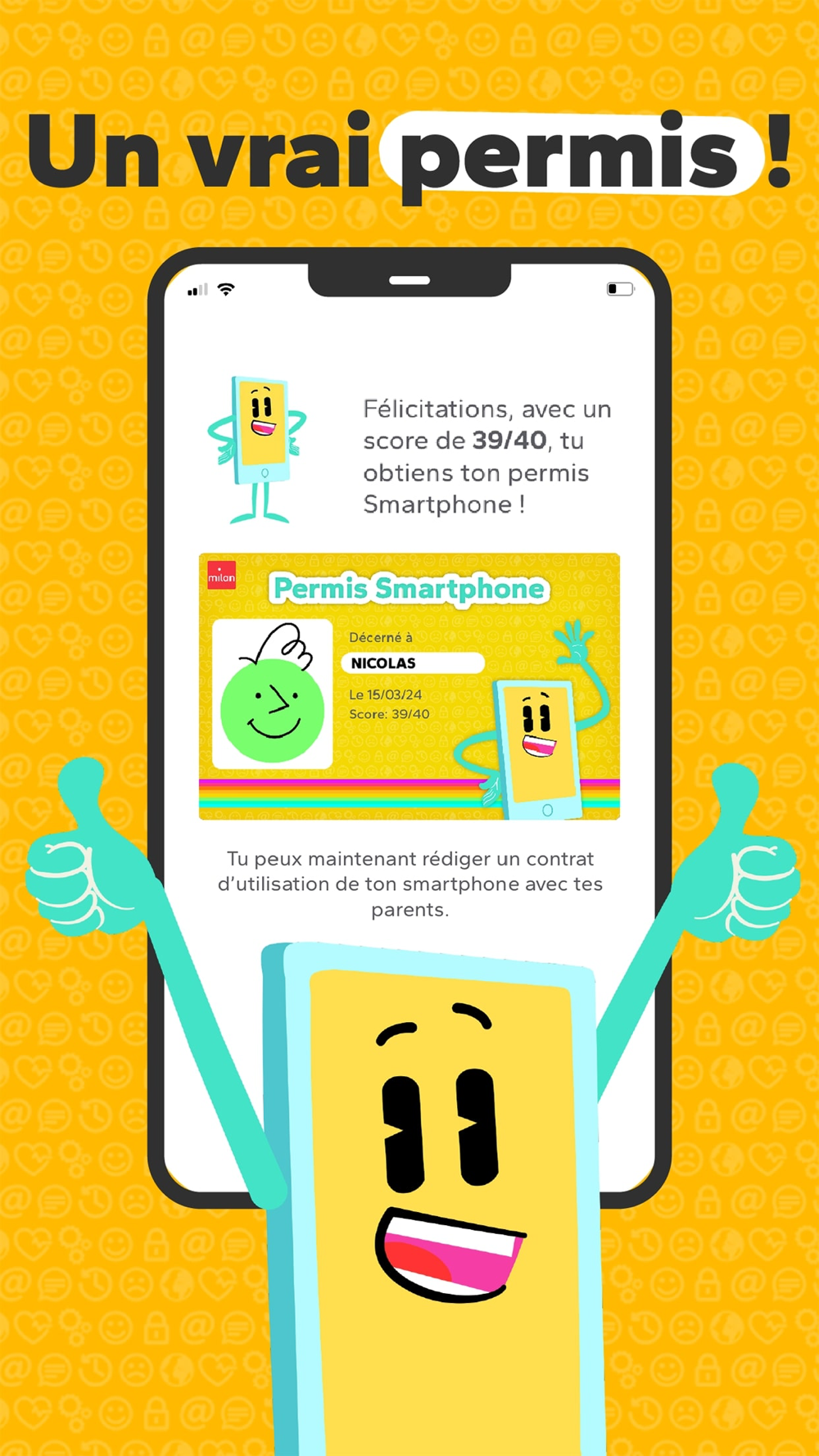 Une fois le permis en poche, Smarty vous propose de signer un contrat qui définira les règles sur l’usage du smartphone à la maison.