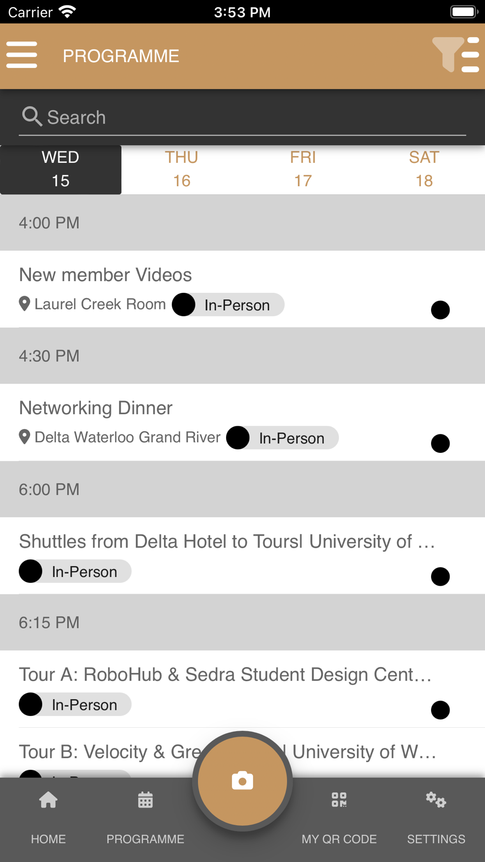 For contact sharing, scan the QR Code on the contact’s badge. Scanned contacts will save basic name information at the time of the scan. Users can select qualifiers or add notes for their scans. The app also allows the user to view, edit, or delete all scanned contacts.