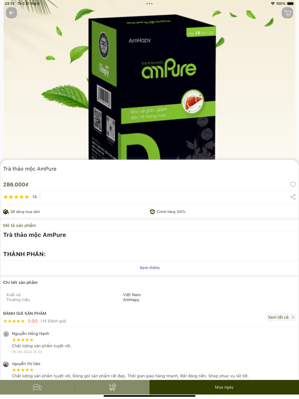 Trà hỗ trợ giải độc rượu bảo vệ gan AmPure