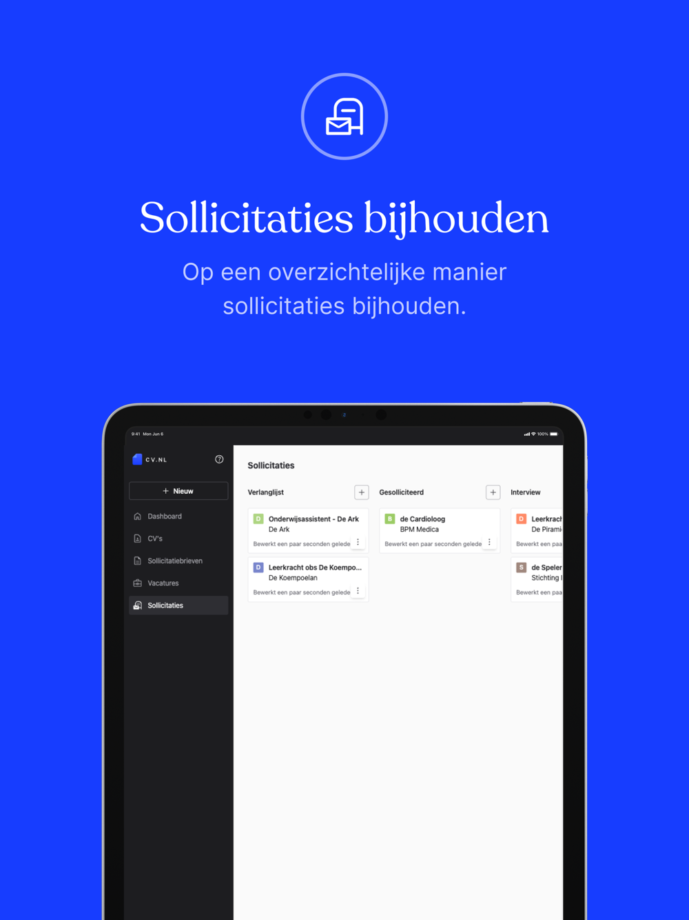 - Een persoonlijk overzicht waarin je al je sollicitaties beheert.