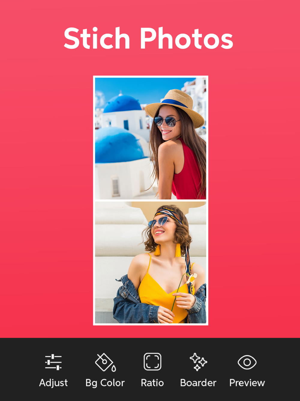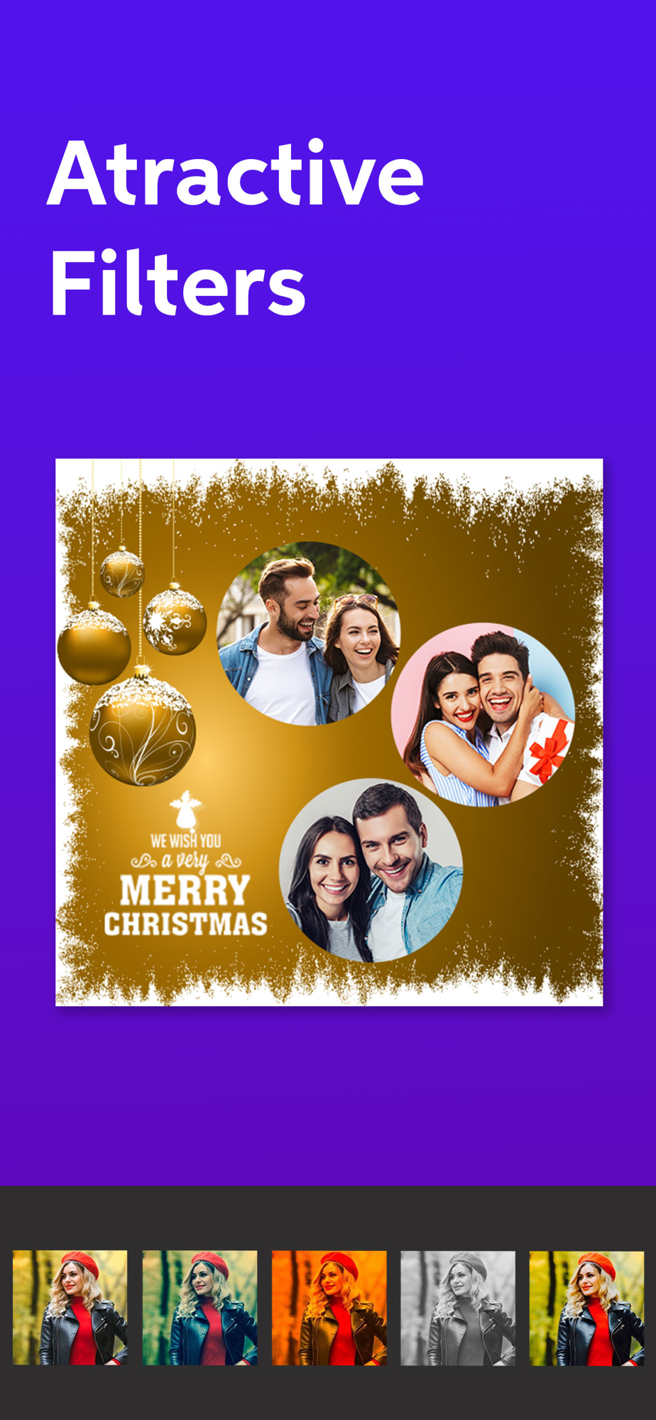 Amazing photo editor for Christmas photo frames with collage maker to share your wishes by making photo collage . Put your photos together and joint pics using our stitch photos option.