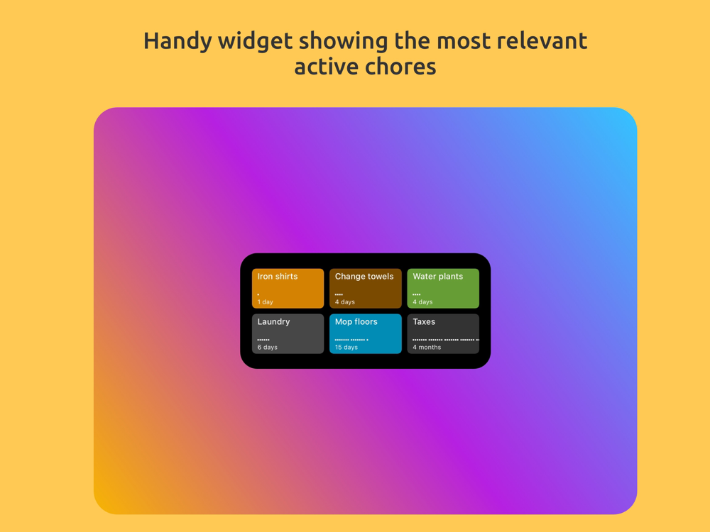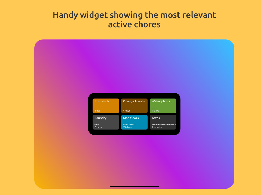 No need to open the app every time. The widget keeps your chore list glanceable right on your home screen.