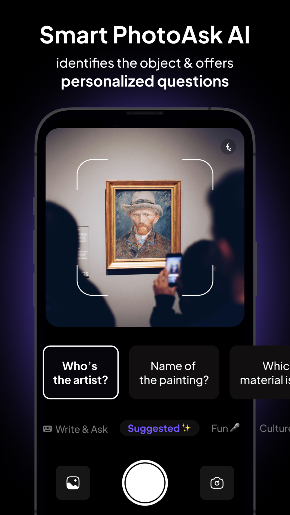 With PhotoAsk AI, it's simple: Snap a picture, ask a question, and chat with AI. Whether you're curious about a landmark, a piece of art, or just want to learn more about what's in your photo, PhotoAsk AI delivers instant, insightful answers.