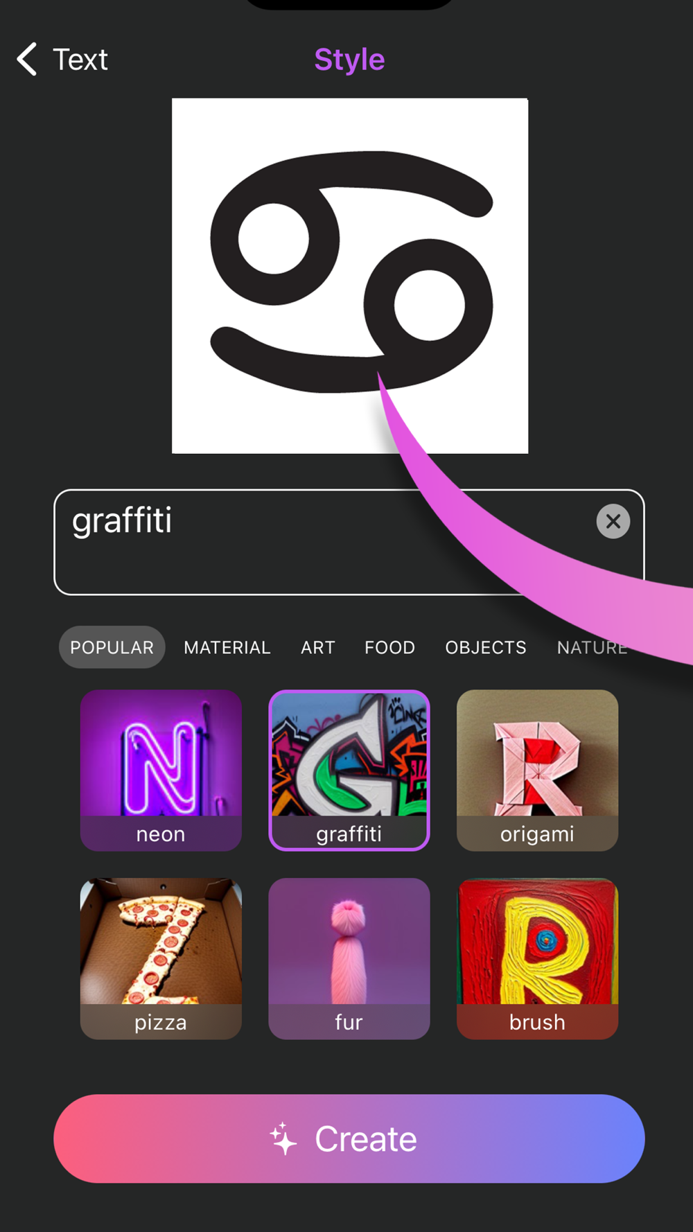 Next, you can choose a style, type your prompt, and generate a perfect AI artwork with your text.