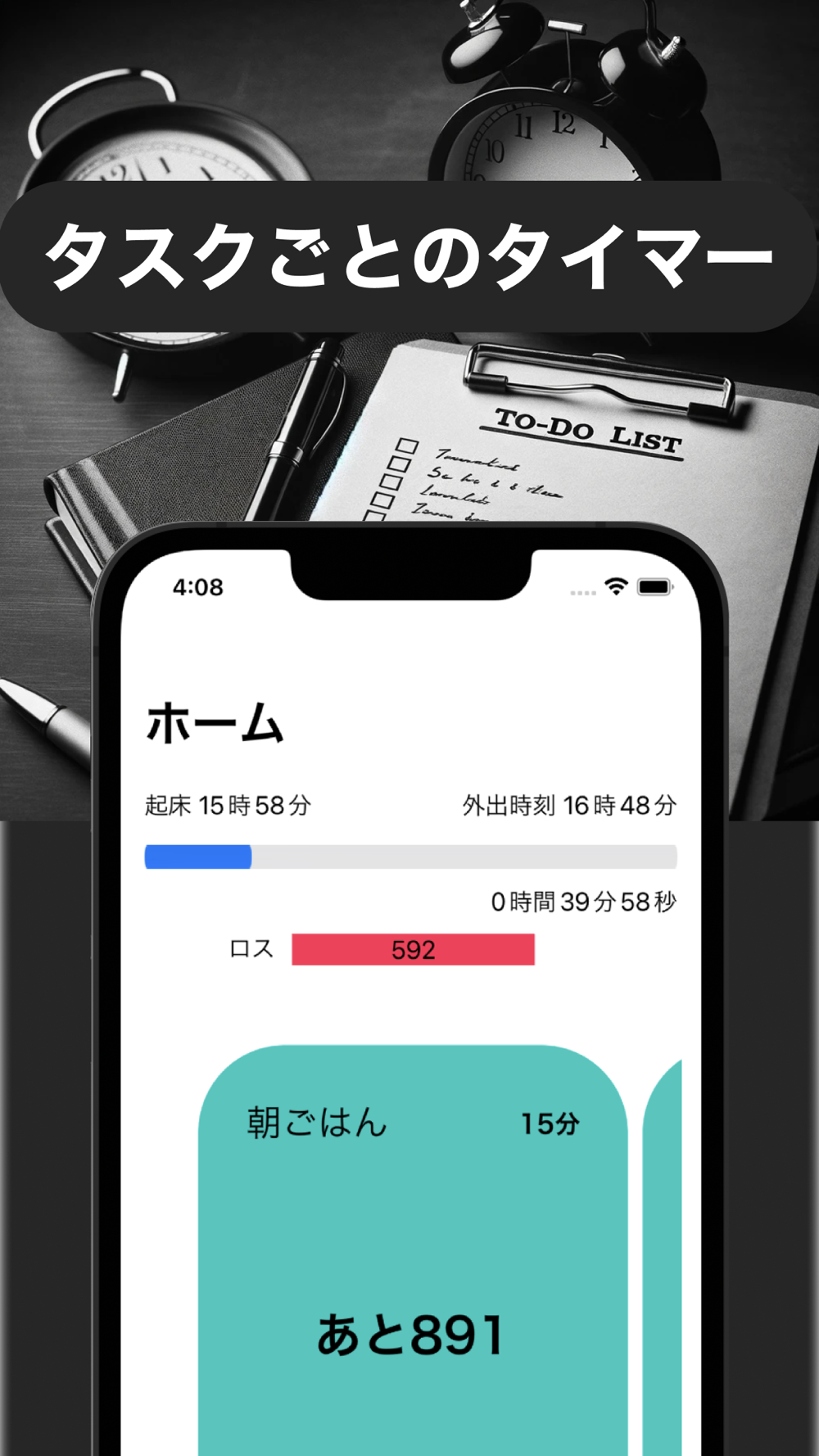 朝行うタスク名と、費やす時間を設定。