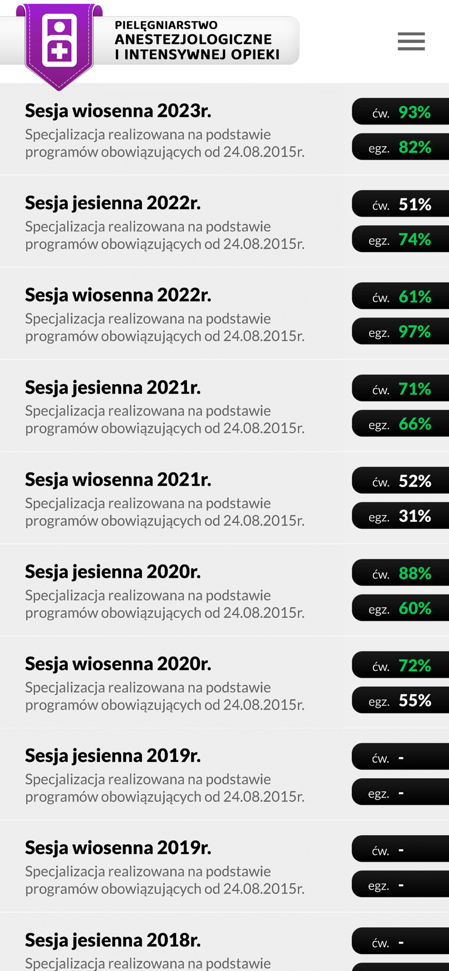Nasza aplikacja zawiera wszystkie testy zaczynając od sesji wiosennej 2018r. (Specjalizacja realizowana na podstawie programów obowiązujących od 24.08.2015r.)