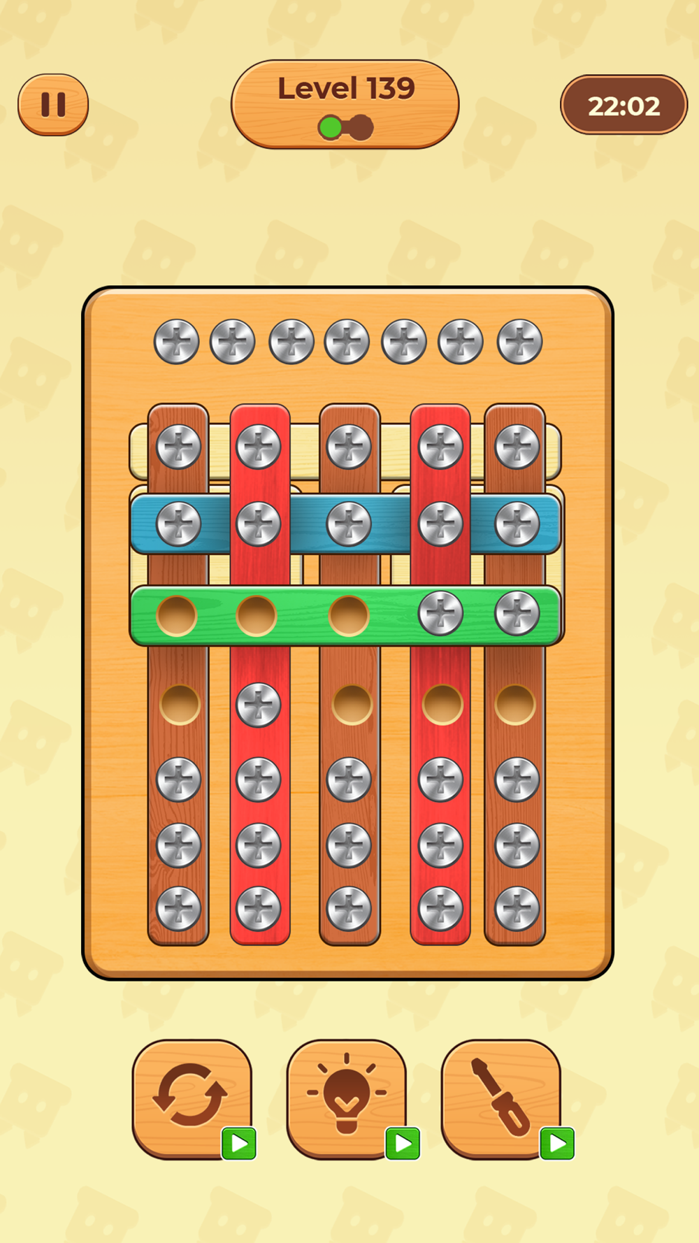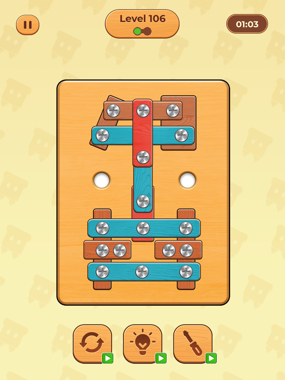 Get ready to embark on a mechanical journey like no other in Screw Puzzle: Nuts & Bolts. Your mission is to untwist all the nuts and bolts from the metal board and strategically drop each metal plate, one by one.