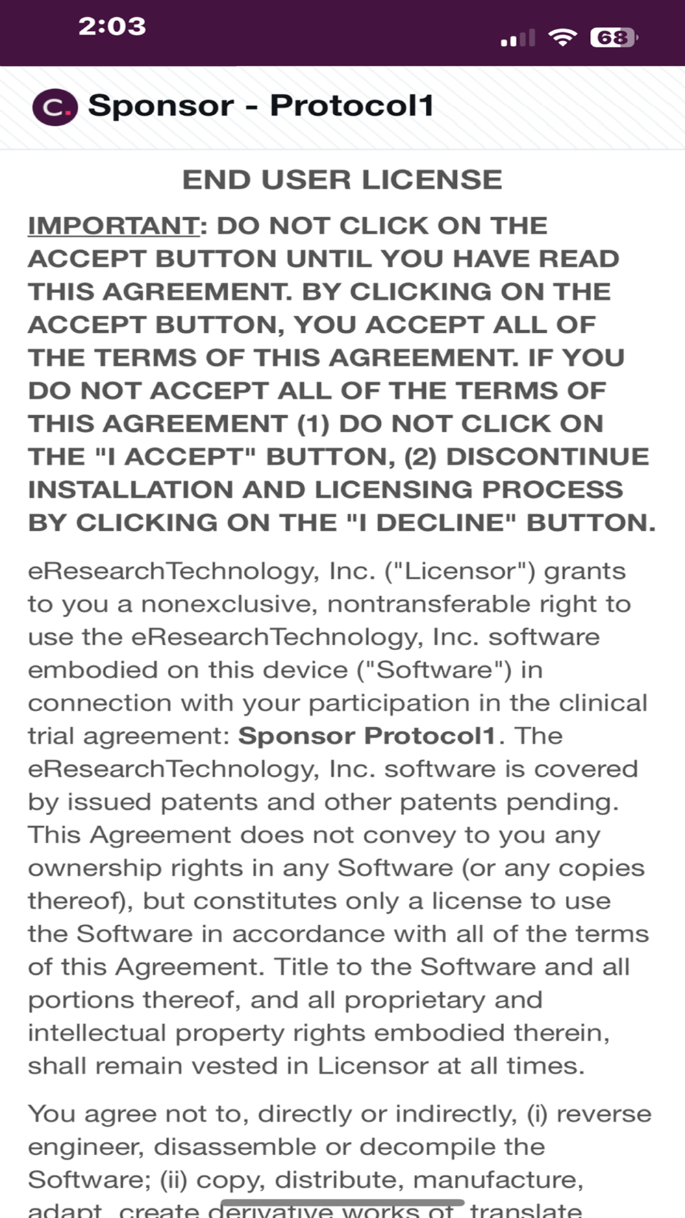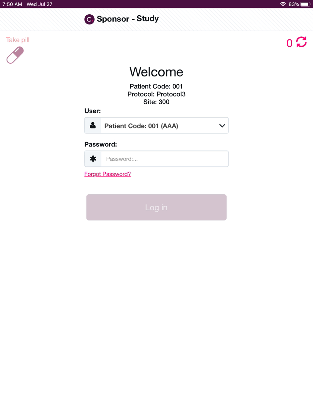 CLARITY-Gastric 01 eCOA App is intended for use to collect patient reported outcomes relating to a clinical trial. Patients must be given accounts by a participating site in order to log in to the app. Patients can report daily symptom changes, and report changes to health associated with the study