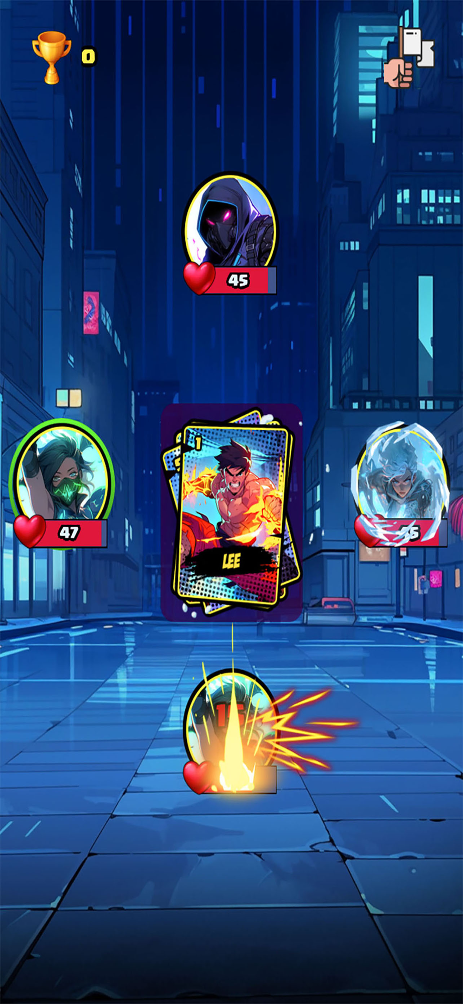 Your mission: strategically damage your opponent to the right and emerge as the ultimate survivor. Fail to secure victory, and you'll lose 20 valuable trophies; triumph, and you'll gain 10 trophies.