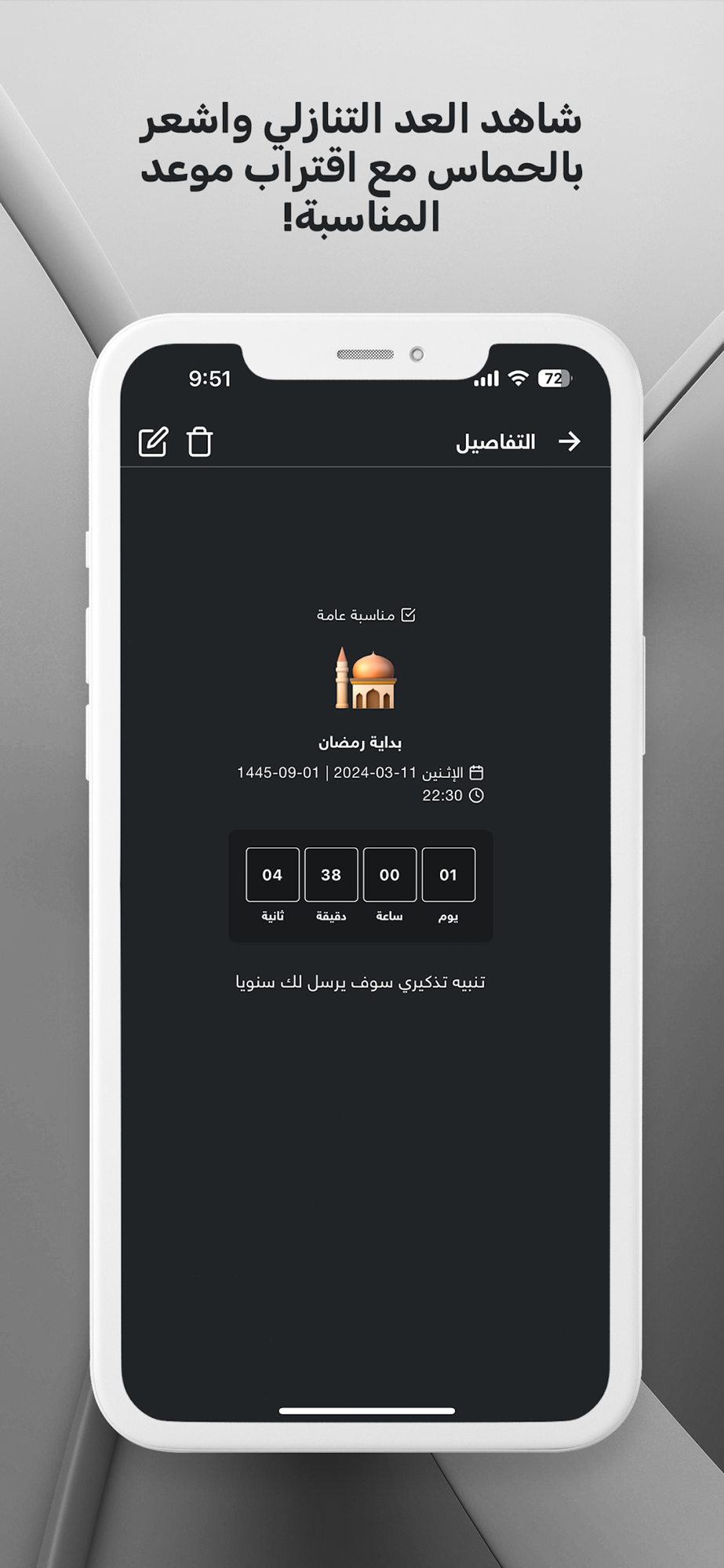 - استمتع بالإثارة وأنت تشاهد العد التنازلي لأحداثك.