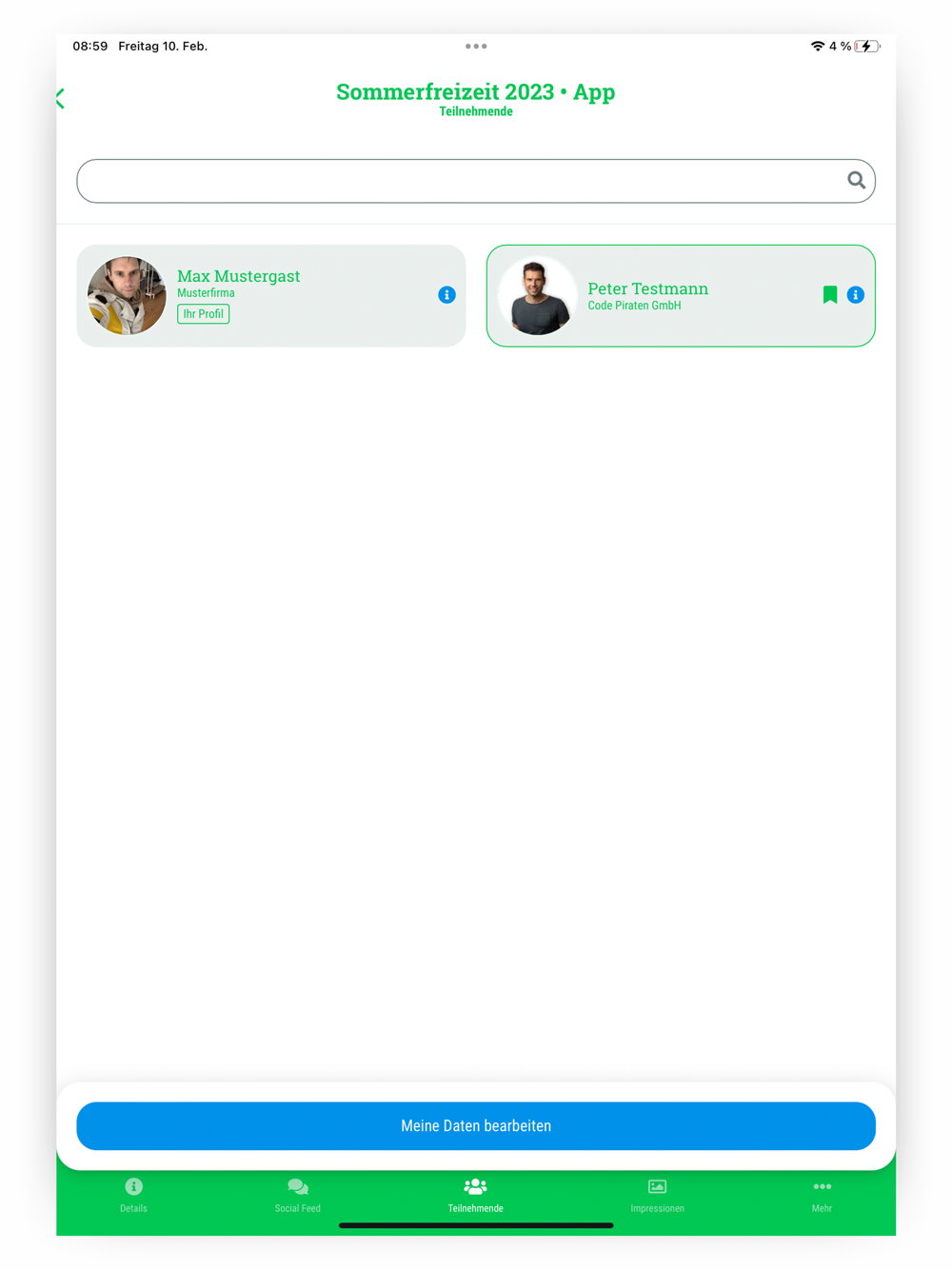 You can conveniently check your data on the go, view information about your personal travel or event schedule and call up exciting information about the destination. By authorising your VI EVENTS APP to receive push notifications, you can stay well informed at all times, even on the move, and are provided with the most important news about your event.