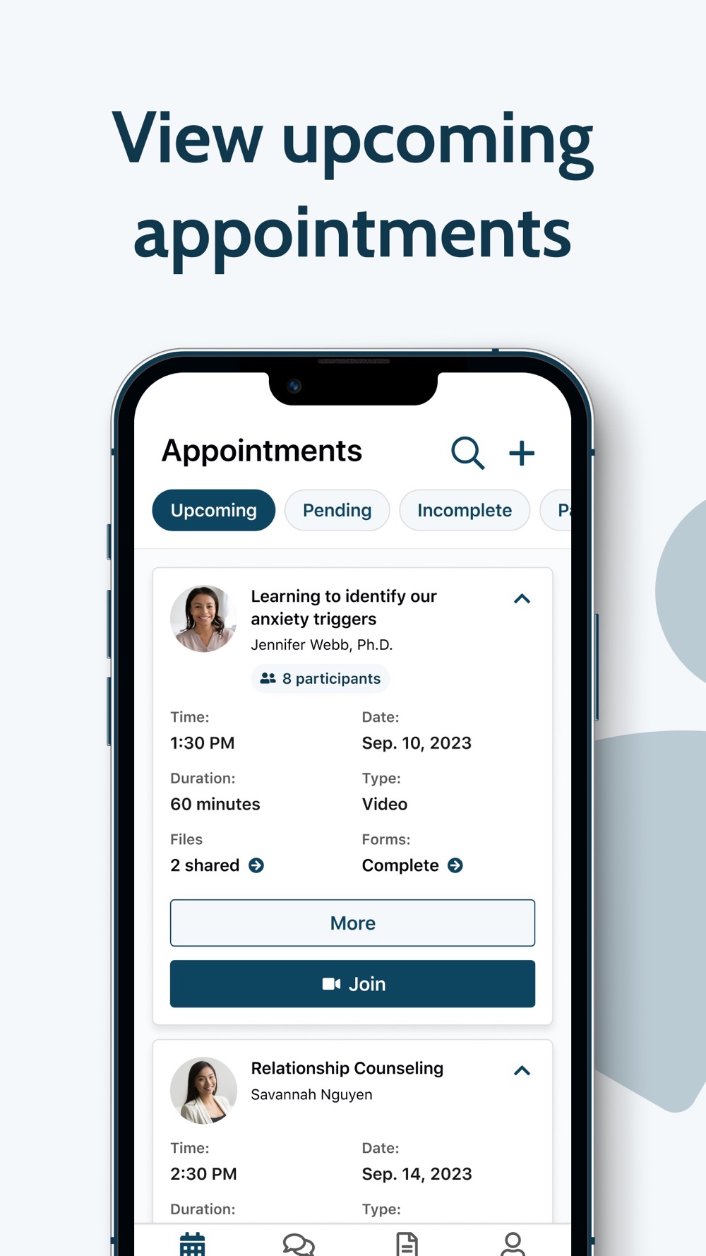 The HopeLink Behavioral Health Client Portal mobile app is a secure, convenient tool that helps you to manage your mental health care journey. In our Client Portal you can view your scheduled appointments and receive reminders, send secure messages to your provider(s), upload insurance cards, complete forms, make payments, and securely connect to your telehealth appointments. HopeLink Behavioral Health is committed to providing safe, accessible mental health care services while maintaining client privacy and security.