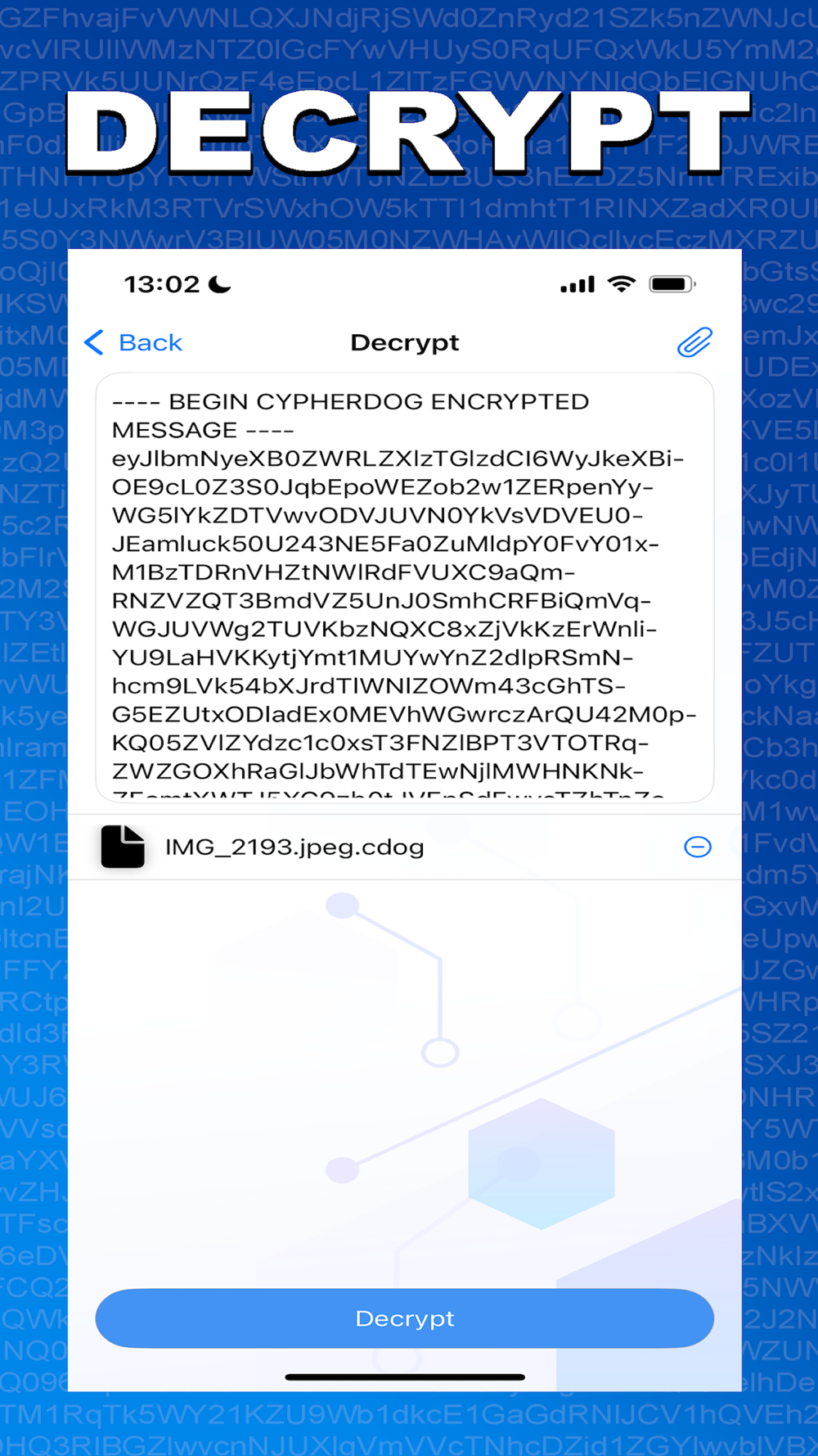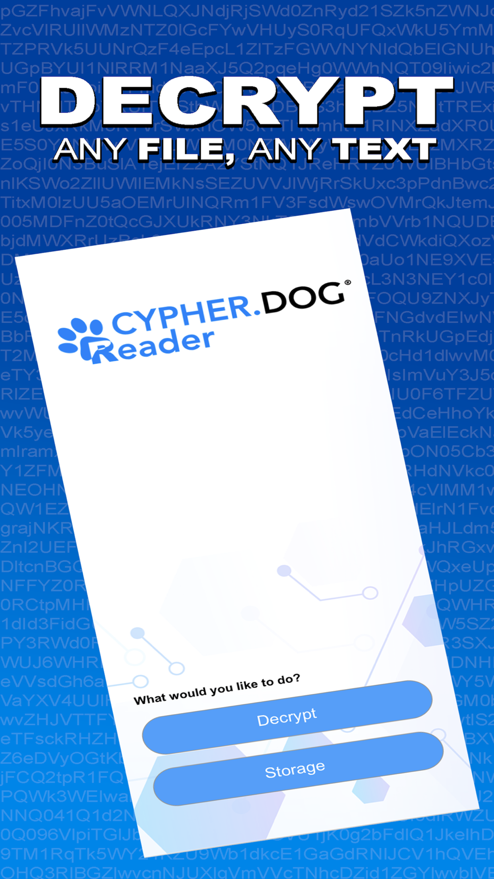 The app allows decrypts all text messages and files received from organizations using Cypherdog Encryption and you can storage in the app.
