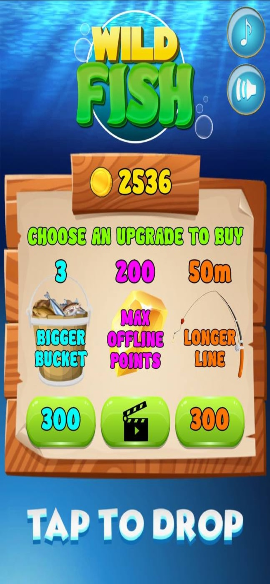 Earn points and upgrade your bucket size and the length of your fishing line.