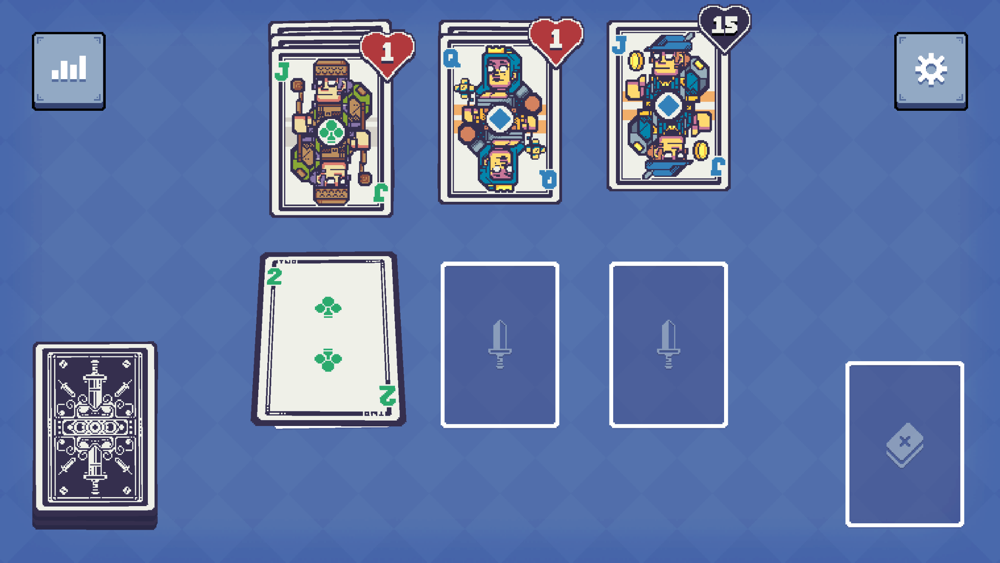 Royal Card Clash is a total reimagining of classic card games like Solitaire, with just you and a deck of playing cards. The number cards serve as your attack cards against the royal cards. Be as efficient as possible to break you enemies. You will have to think carefully and play your cards right to achieve victory.