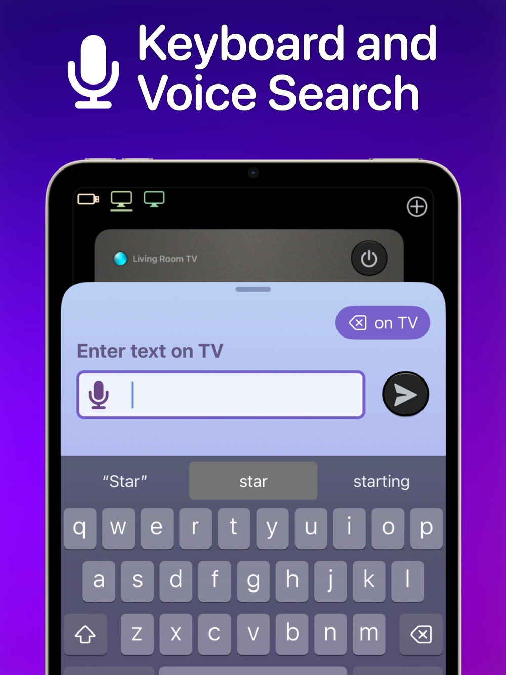 • Enter text on your TV easily with the standard iOS keyboard or with automatic voice transcription.