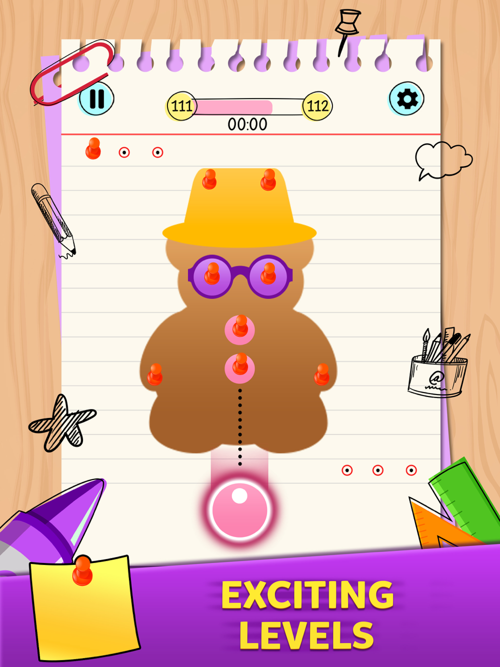 - Carefully plan your moves to solve the puzzles. With increasing complexity, prepare to stretch your **strategic thinking** to its limits in what could only be described as a captivating pin pull game.