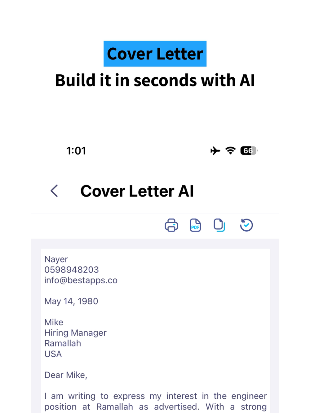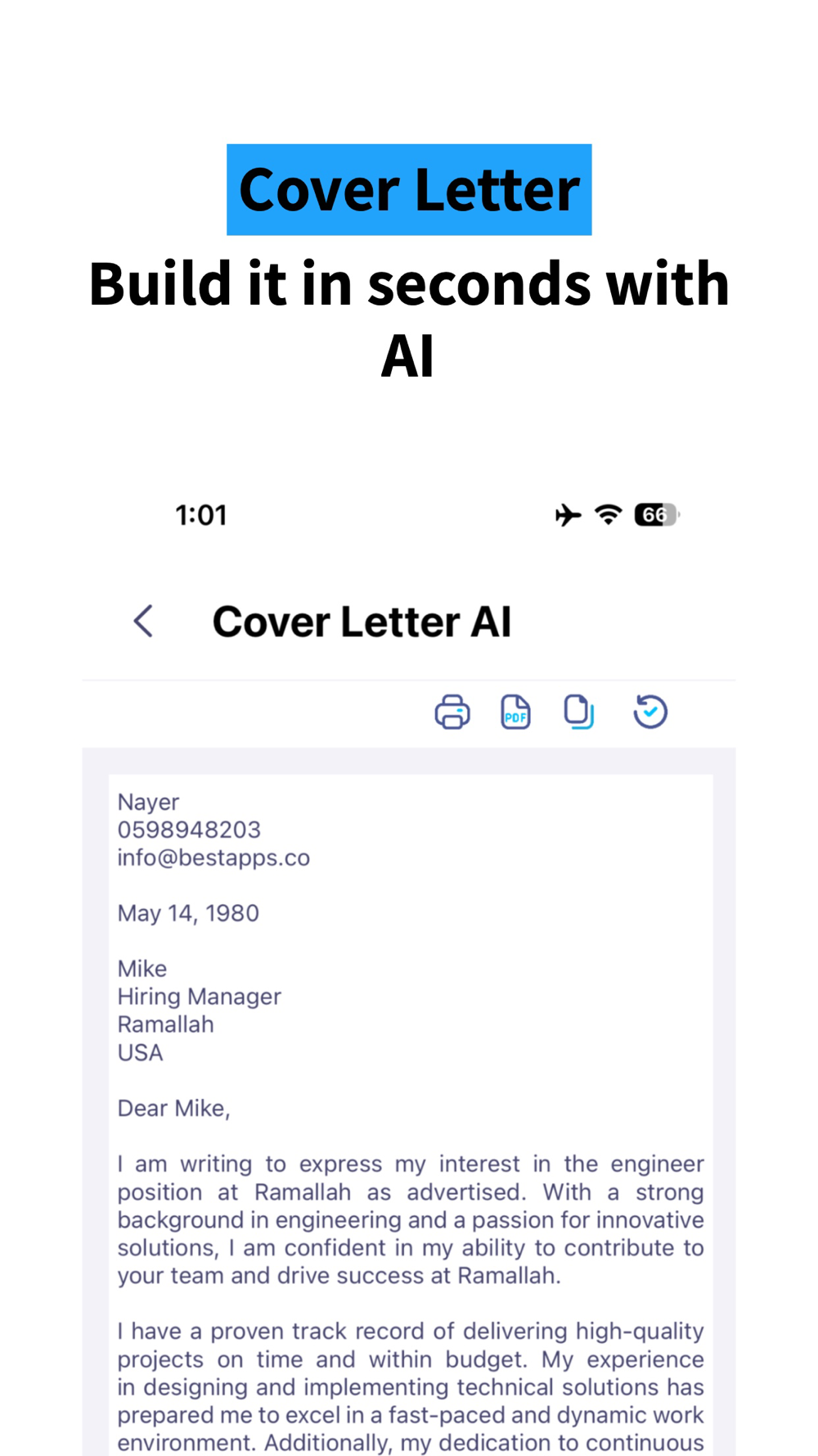 √ Unique Cover Letter with the power of Artificial Intelligence