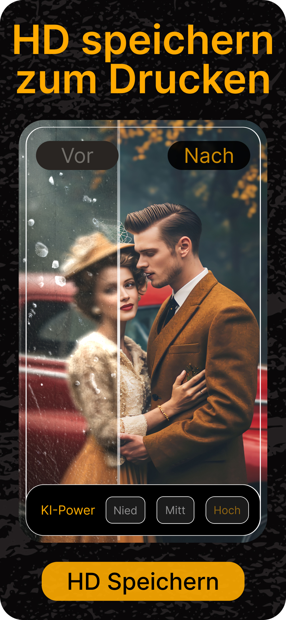 • KI-Restauration von Fotos: Nutzen Sie KI, um Unschärfe zu entfernen, Schärfe zu verbessern und die ursprüngliche Schönheit Ihrer Fotos wiederherzustellen. Ideal zum Fotos reparieren und alte Fotos verbessern.