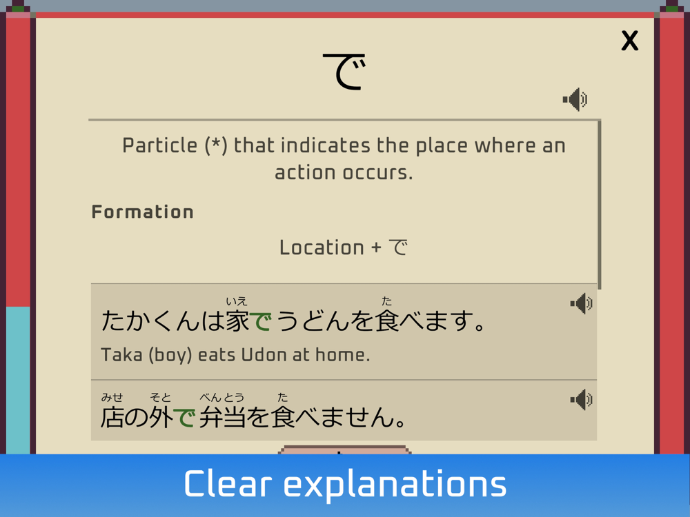 단어와 문법은 JLPT 기준에 따라 N5부터 차근차근 소개됩니다.
