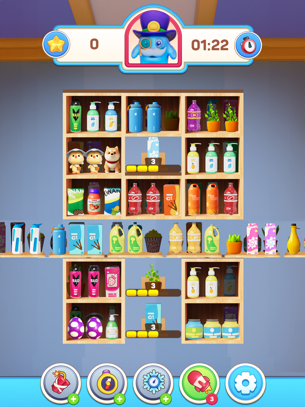 Your mission is simple: Find the perfect 3-match and merge them to clear the level! Merge the toys, teacups, crowns, goods – anything you see! They're gone, making room for more. But watch out! Mismatched stuff gets in the way, slowing you down. Think fast, plan ahead, and use cool tricks to clear the board your own way.
