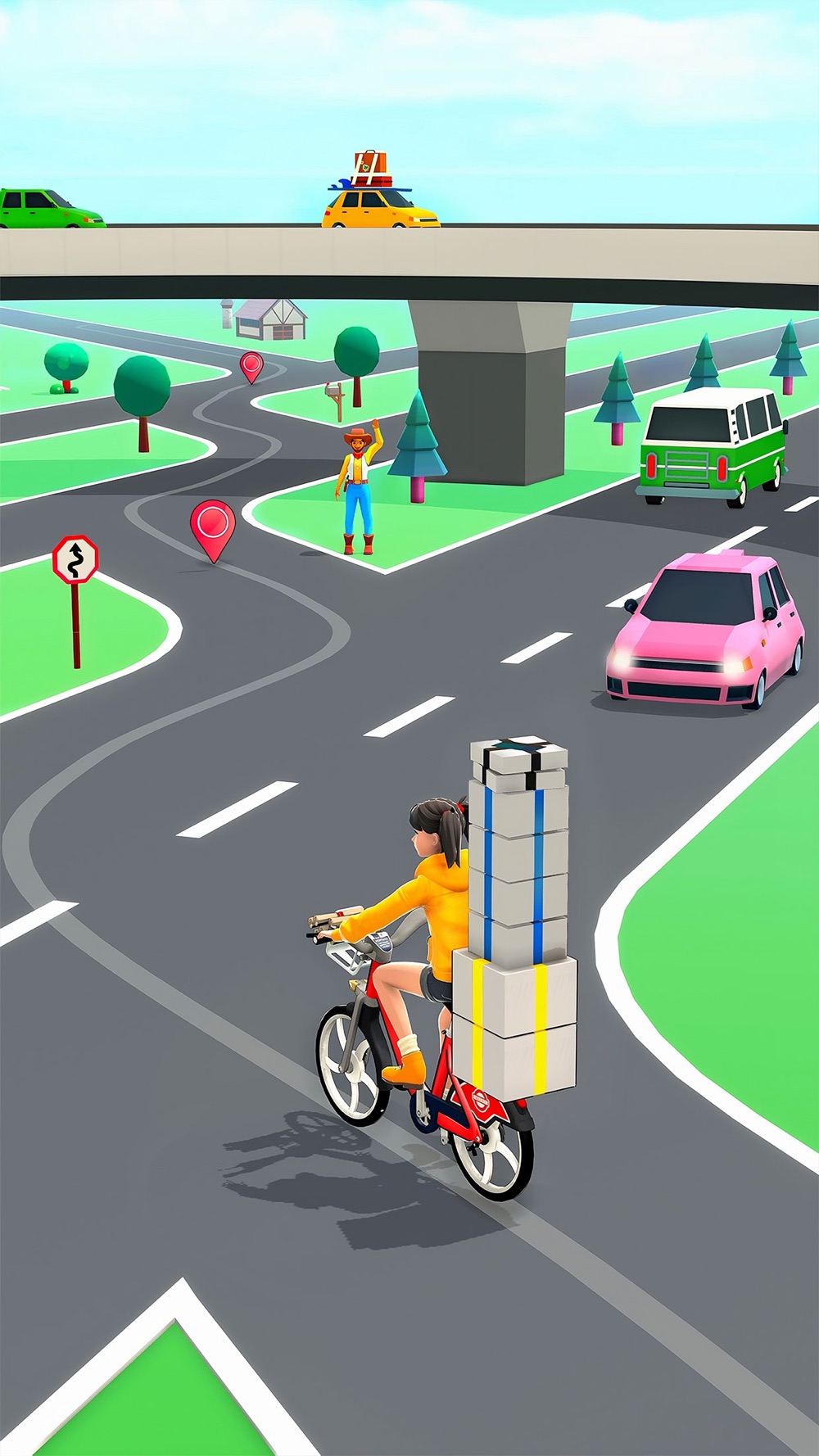Deliver gifts for the people waiting in your way and earn extra cash. You are a smart bicycle rider so navigate through crazy highway traffic roads and deliver the tickets around the city. In the 11th hour avoid traffic obstacles and cars. Train hit could be extremely fatal so avoid the train passing through train stations and crossings. Keep your distance from cars and proceed to achieve your goal. Perform the amazing task of ticket delivery.