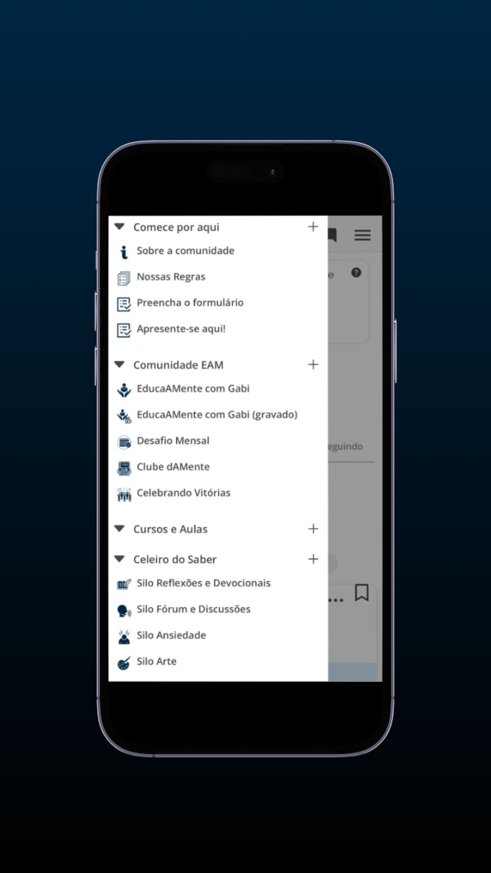 Um refúgio seguro onde a educação, o compartilhamento de conhecimento, e o apoio mútuo em saúde mental florescem.