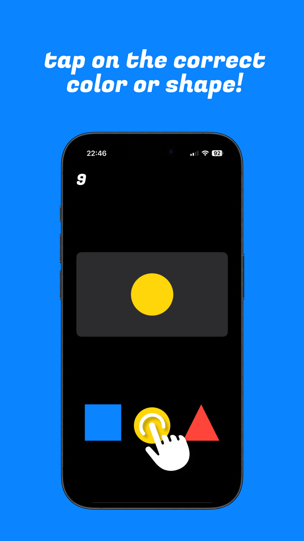 Tap the correct color or shape as it appears on the screen to earn points, but beware -any error can be fatal!