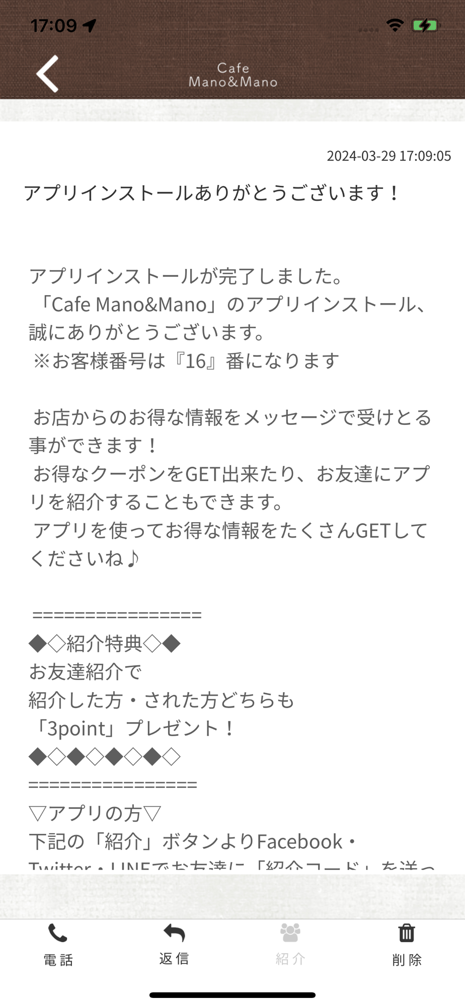 Mano&ManoのアプリをSNSを通じてお友達に紹介する事ができます。