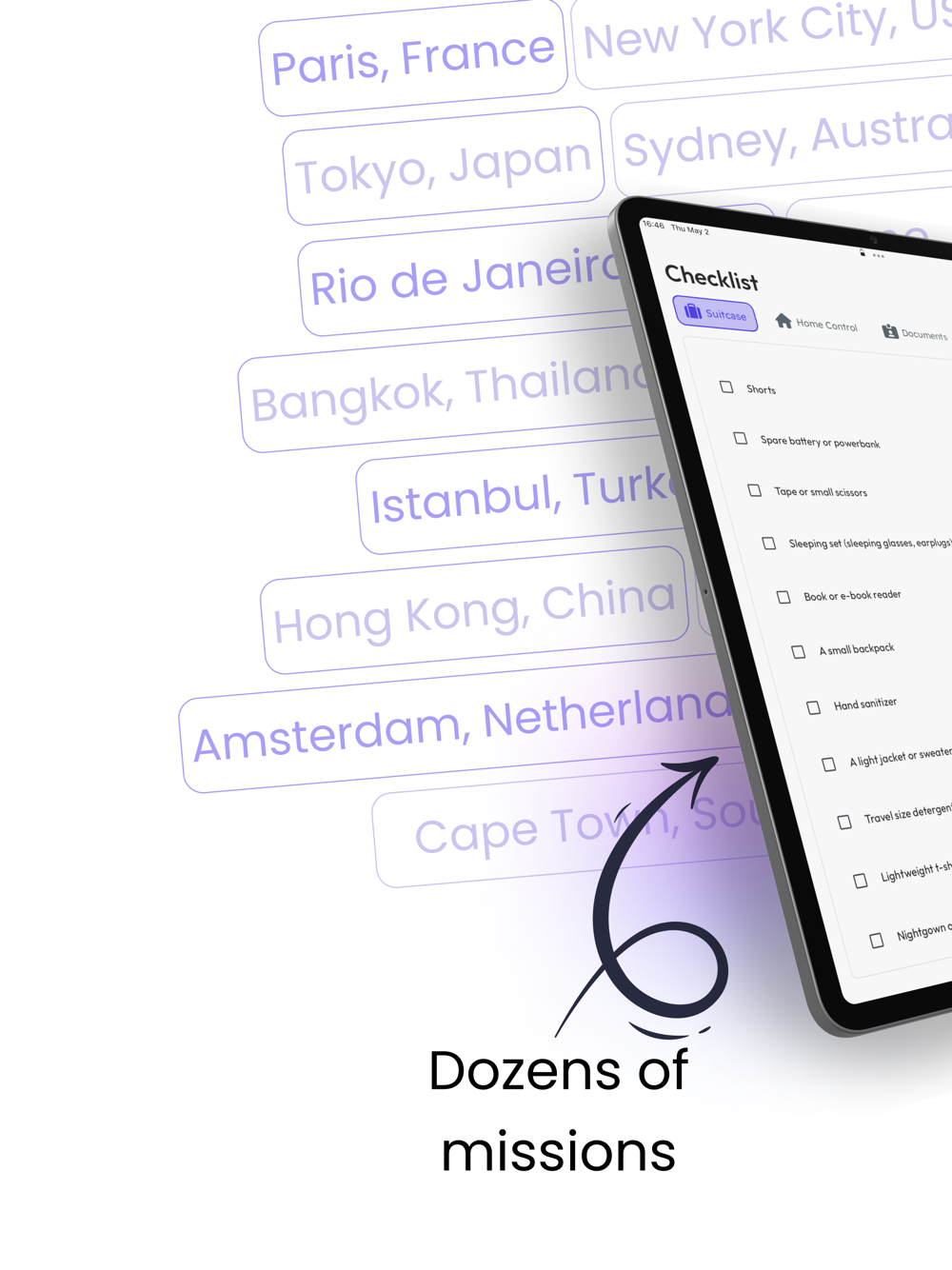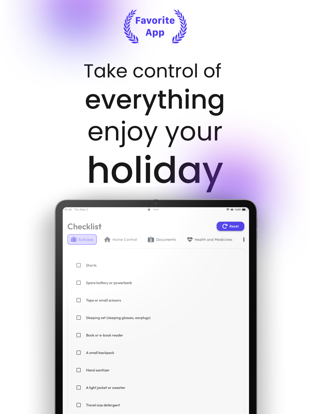Whether you're jetting off for a vacation or heading out on a business trip, our travel checklist app ensures you never forget the essentials. Predefined checklists include everything you need for your luggage, health items, important documents, home safety, and financial tasks. Features include:
