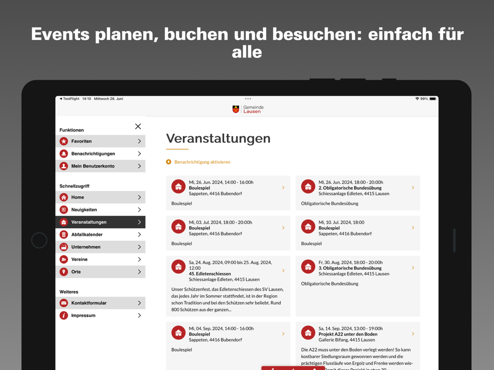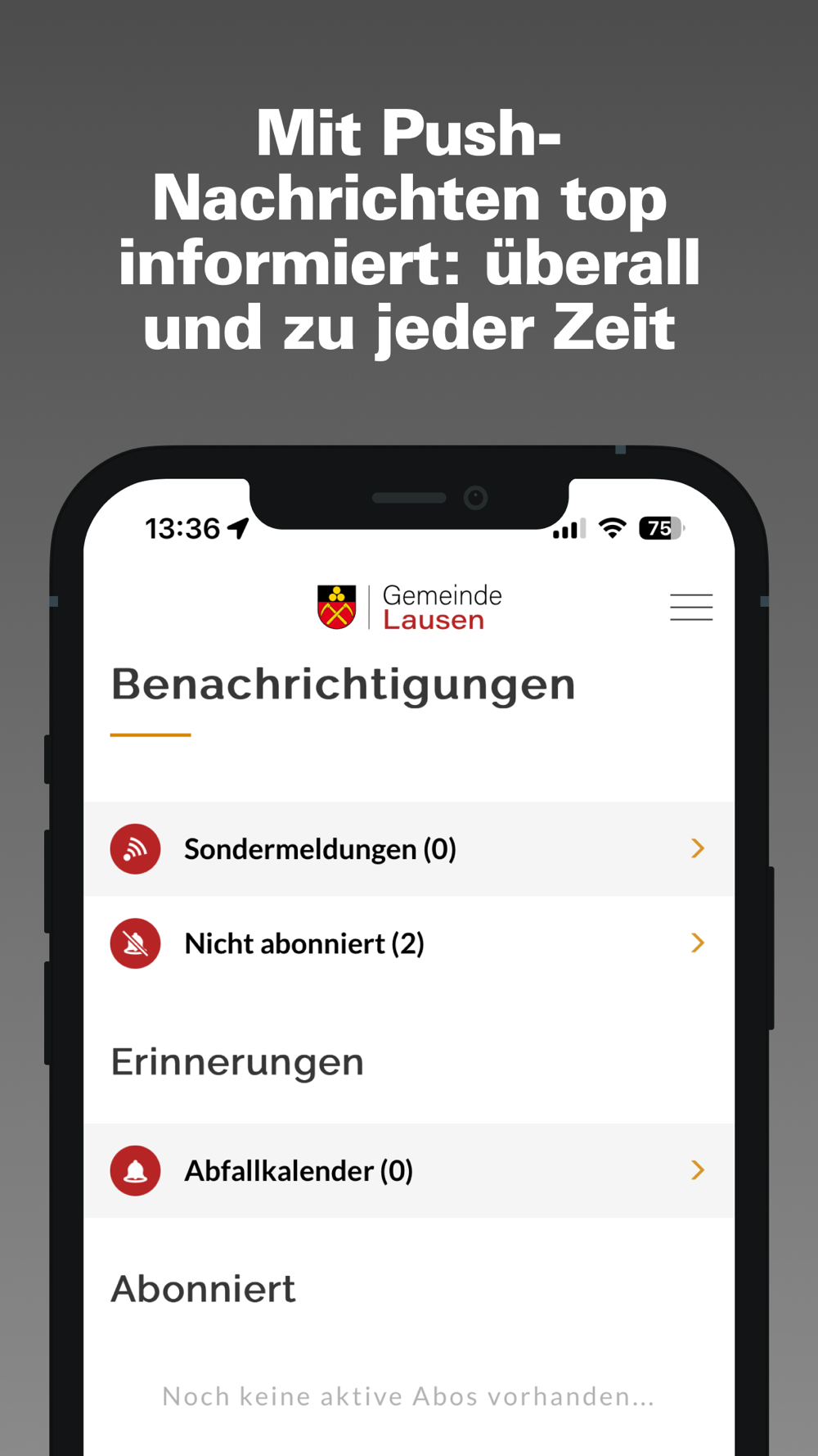 Hier finden Sie aktuelle Nachrichten, Informationen zu Veranstaltungen, den Abfallkalender sowie ein Verzeichnis von Vereinen und Unternehmen. Mit der Gemeinde-App Lausen haben Sie alle wichtigen Informationen immer griffbereit und können sich schnell und einfach über das Geschehen in Ihrer Gemeinde informieren.