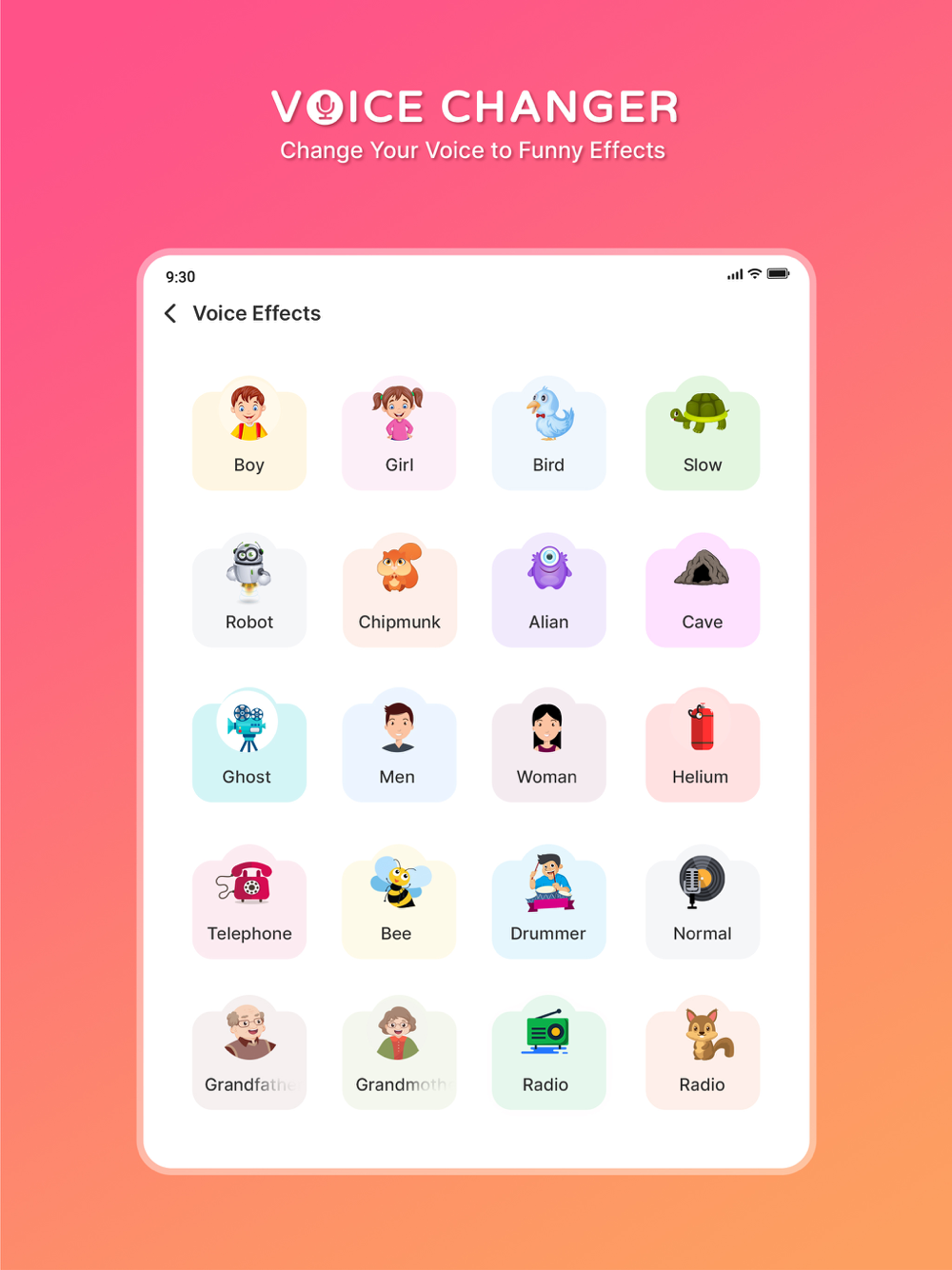 Funny Voice Changer - Free Voice Changer App is a funny voice changer app that can change your voice into different voice effects and sound effects. With its voice avatar and ambient sounds, you can easily change your voice into different effects for free. You can change voice for voice recordings or audio files. You can also change voice for videos to have more fun or share it to social media. It is one of the best voice changes to change voices for free.