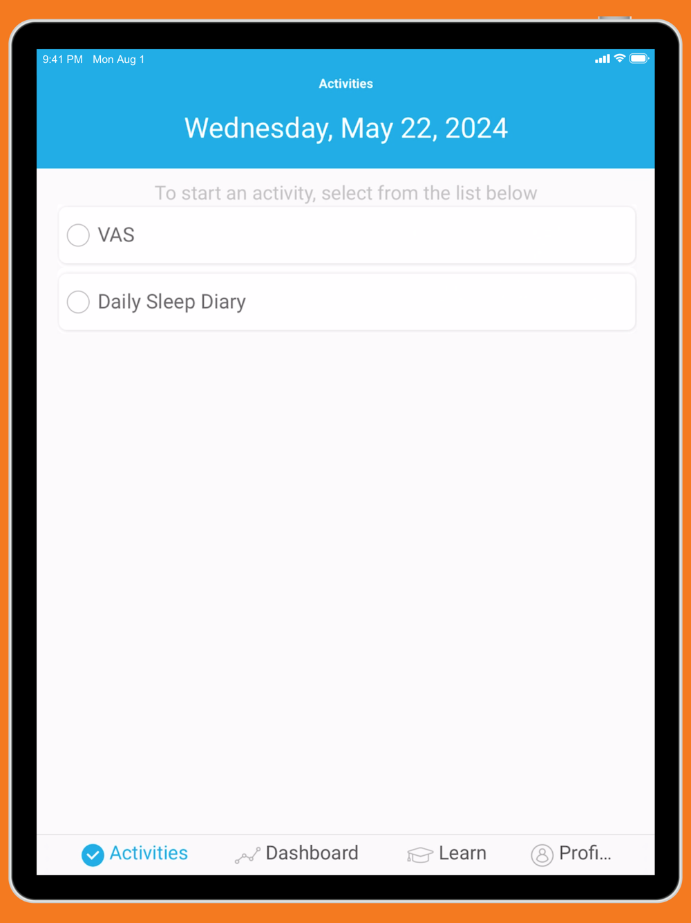 - Activities – complete scheduled or on-demand study tasks and assessments