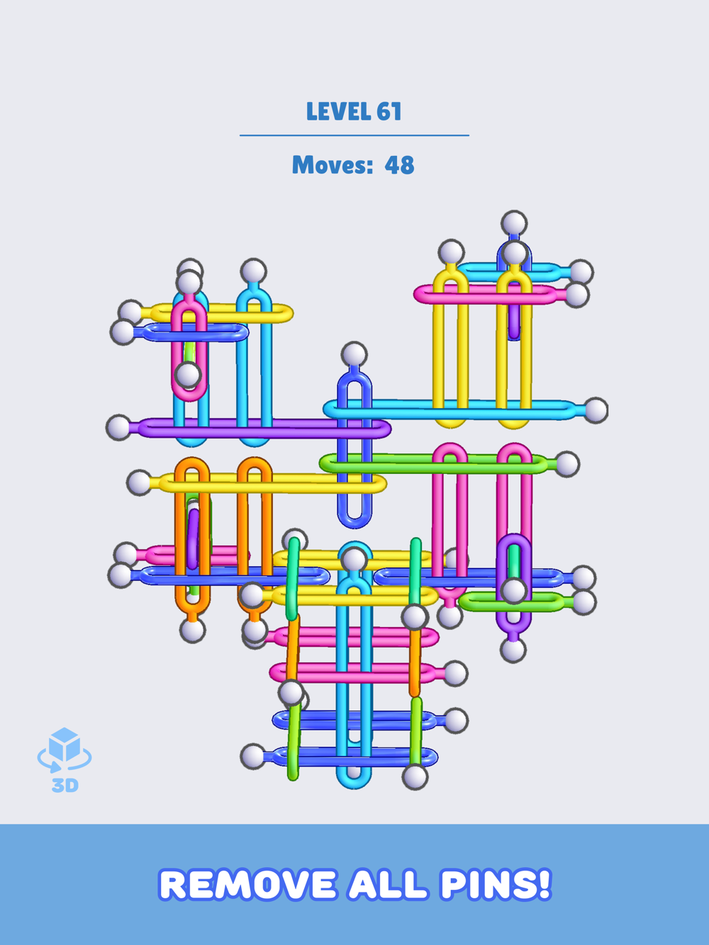 Unpuzzle levels pin by pin and train your brain to solve various problems! Whether you enjoy satisfying puzzle games or brain teasers, this tapping game is perfect for you. Unlock all the challenging levels by carefully tapping and swiping the pins to release them and help them fly away in one direction.